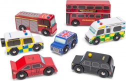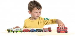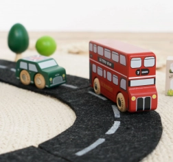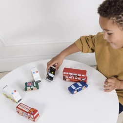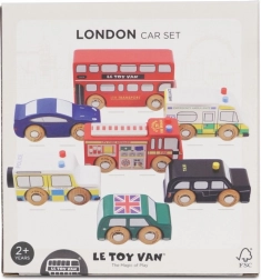 Descoperiți lumea străzilor aglomerate din Londra cu vehicule din lemn detaliate de la Le Toy Van. Setul include un autobuz etajat, un taxi negru, o mașină de pompieri, o ambulanță, o mașină de poliție și două autoturisme. Construcția robustă din lemn de cauciuc (hevea) sustenabil și marginile netede sunt ideale pentru mâinile mici ale copiilor, care își exersează prinderea, coordonarea mână–ochi și imaginația în timpul jocului.