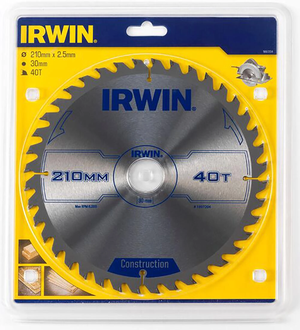 Disc de tăiere IRWIN performant, cu diametrul de 210 mm, având 40 de dinți și geometrie ATB, destinat tăieturilor rapide și curate în lemn. Datorită lățimii înguste a tăieturii de 2,5 mm, fantelor de evacuare și dilatare și Carburii metalice de calitate industrială, rămâne ascuțit mai mult timp, taie lin și reduce încălzirea și deformarea discului.