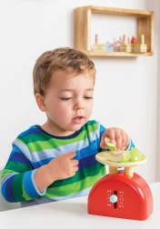 Acest cântar colorat pentru copii încurajează jocul imaginativ, predă elementele de bază ale cântăririi și numărării și dezvoltă motricitatea fină și abilitățile cognitive. Datorită execuției robuste din lemn sustenabil, rezistă perfect jocului zilnic.