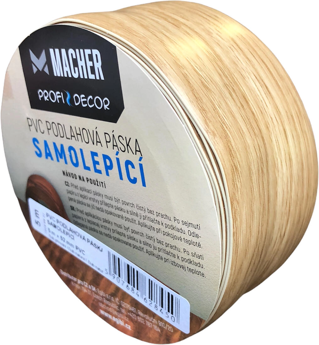 Bandă de margine autoadezivă practică, în decorul stejar natural, pentru o finisare curată și elegantă a pardoselilor. Datorită lățimii de 52 mm și lungimii de 5 m, acoperă cu ușurință rosturile de dilatație și micile denivelări, în timp ce materialul rezistent din PVC garantează o durată lungă de viață și o întreținere ușoară.