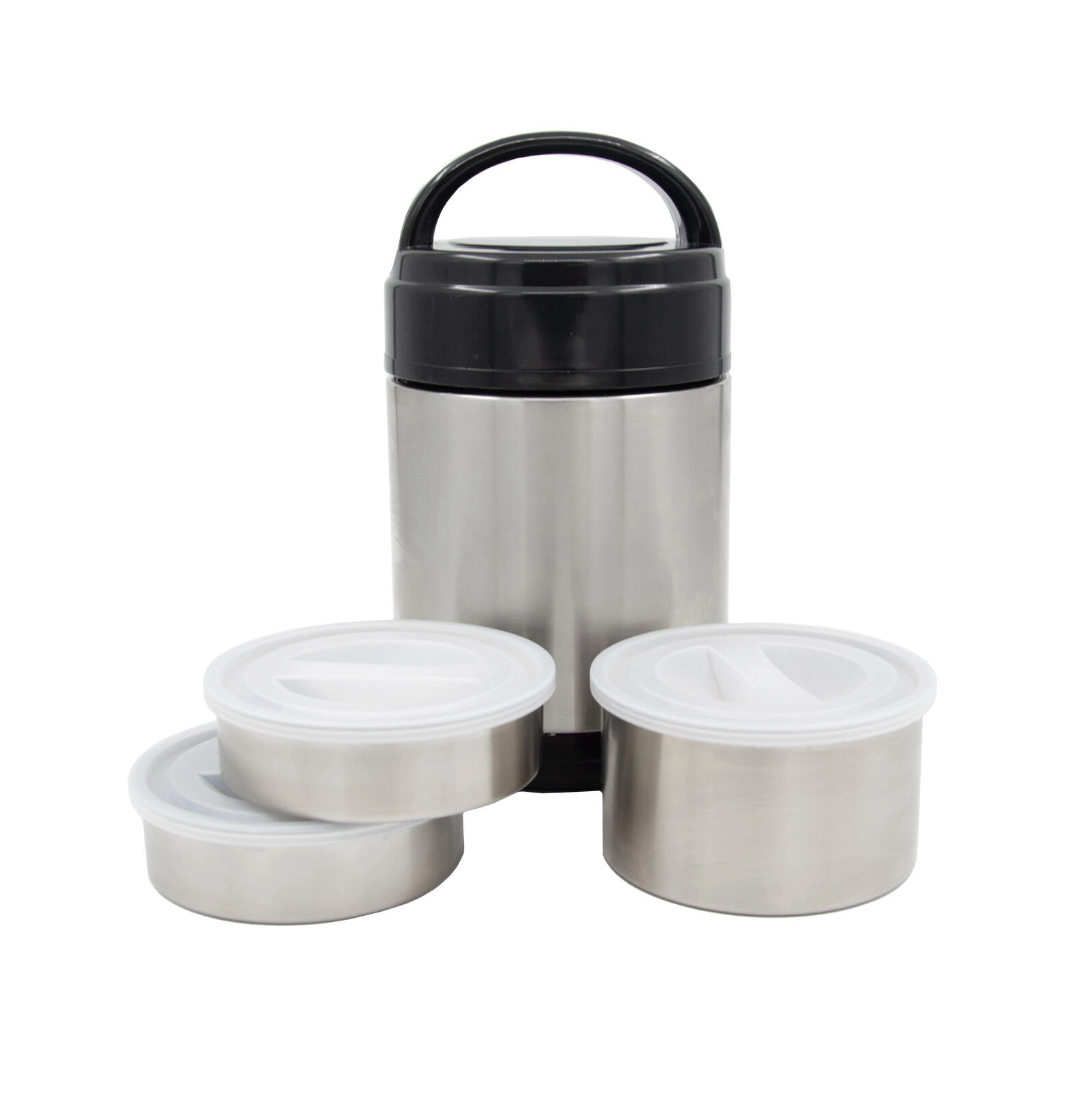 - Compartimentare practică: 3 boluri detașabile din inox, cu capace