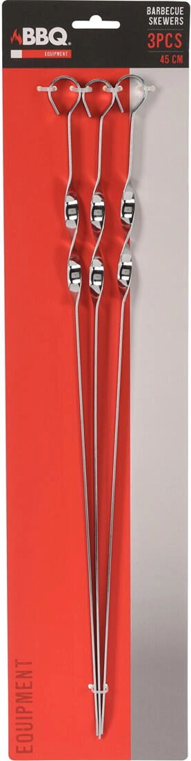 Scobitori de grătar plate, practice, din oțel inoxidabil de înaltă calitate, cu lungimea de 45 cm, în set de 3 bucăți. Datorită profilului plat, carnea nu se rotește, se gătește mai uniform și nu se arde pe o singură parte. Ochiul rotund de la capăt asigură prindere și manevrare confortabile la grătar și la cuptor.