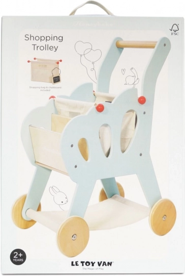 Oferiți-le copiilor un joc de magazin realist cu căruciorul de cumpărături din lemn LE TOY VAN din colecția premiată Honeybake. Construcția robustă din materiale sustenabile, marginile netede și roțile ușor de manevrat asigură o „plimbare” sigură și distractivă prin „supermarket” acasă sau la grădiniță.