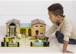 Hambarul, grajdul, sala de muls și cotețul creează un mediu agricol complet, care îi atrage pe copii în joc și le permite să creeze propriile povești.