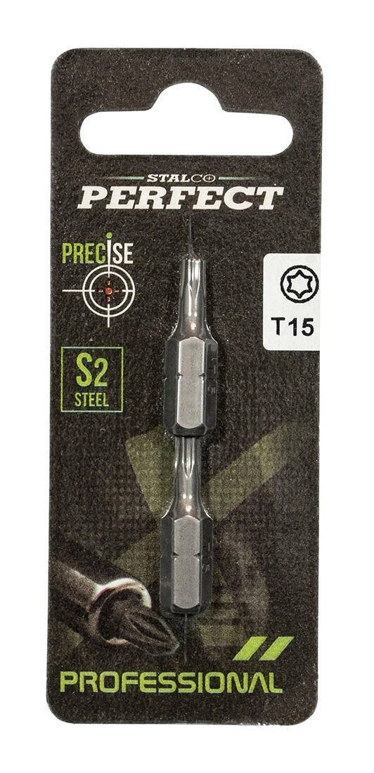 Biți TORX de calitate de la STALCO pentru înșurubare precisă în atelier și acasă. Setul conține 2 bucăți de biți de dimensiune T10 cu lungimea de 25 mm, potriviți pentru unelte manuale și electrice, asigurând transfer fiabil al cuplului.