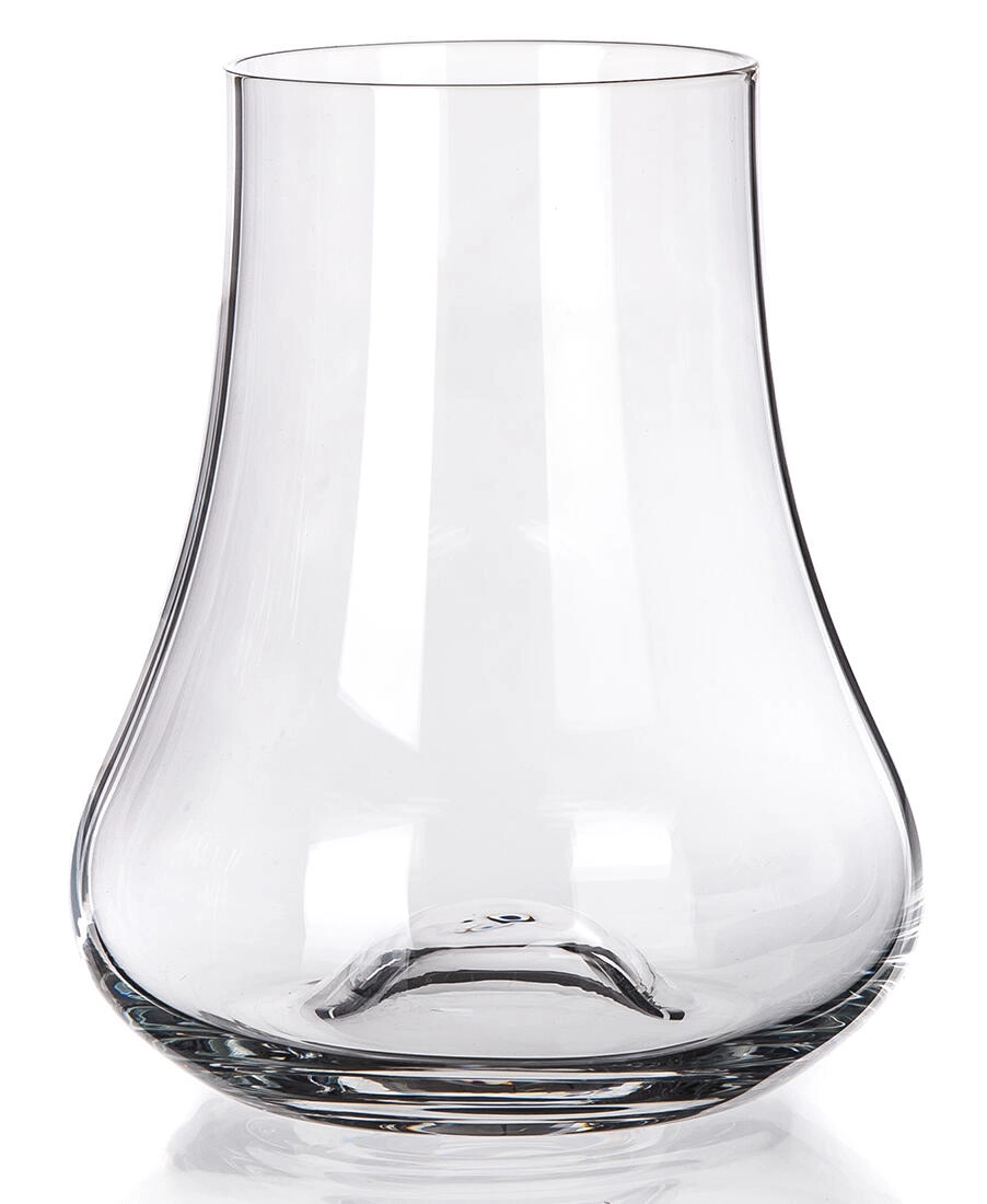 Gâtul îngust concentrează miresmele și evidențiază caracterul whisky-ului, în timp ce baza mai largă ajută la aerare și la stabilitatea paharului.