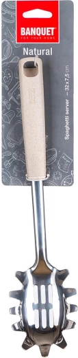 Lingura practică pentru spaghete din gama Natural combină oțelul inoxidabil pentru durabilitate îndelungată și un mâner din polipropilenă cu tărâțe de grâu pentru o prindere confortabilă. Este ideală pentru utilizare profesională și casnică, se întreține ușor și poate fi spălată în mașina de spălat vase. Designul simplu și funcțional garantează atemporalitate și rezistență ridicată.