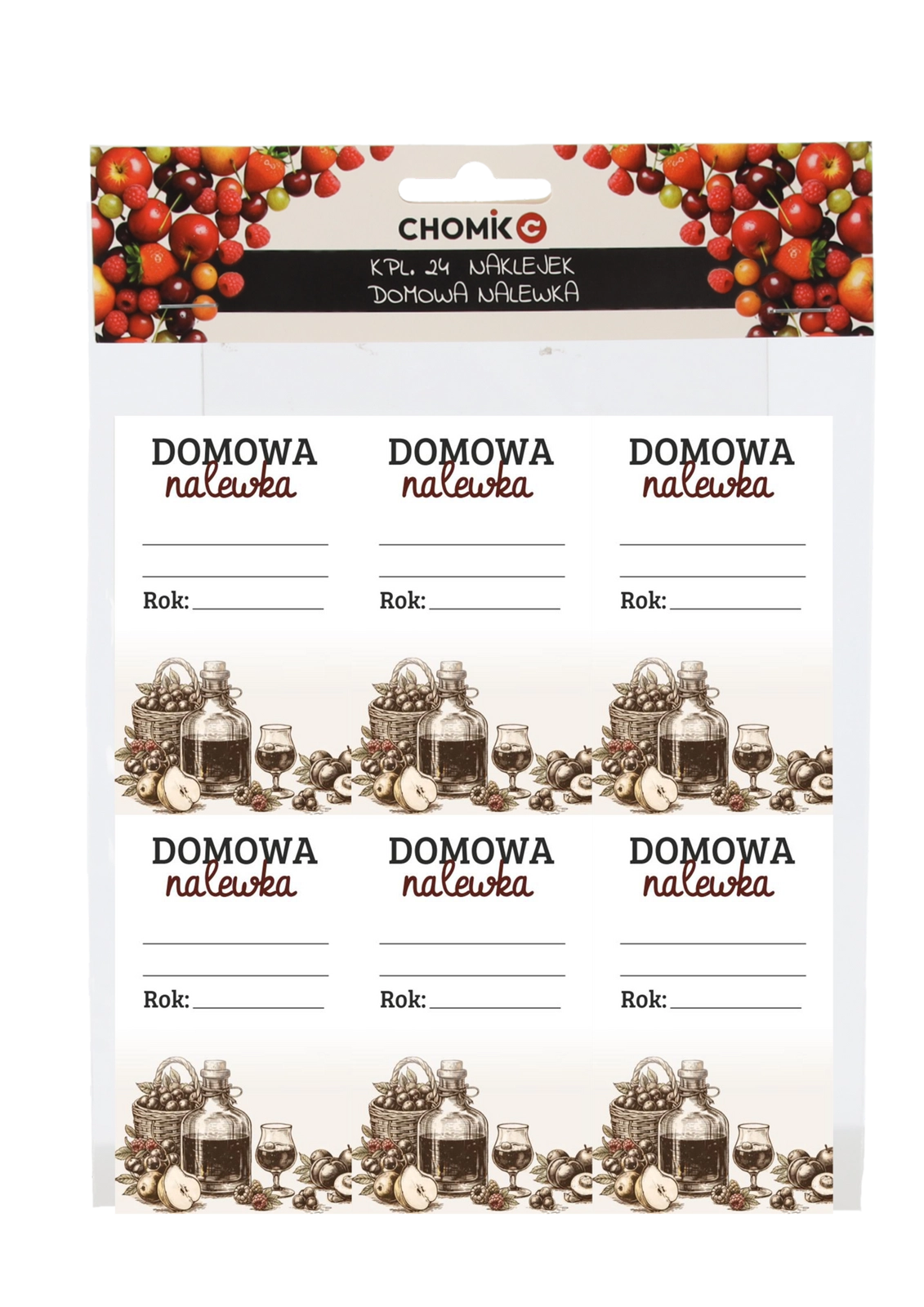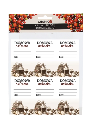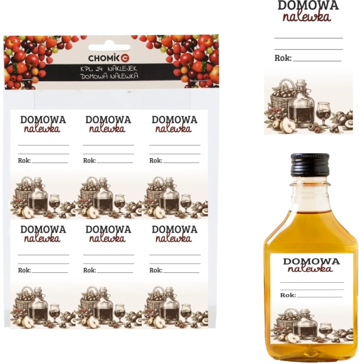 Set practic de 24 de etichete autocolante „Domowa Nalewka” pentru etichetarea profesională a lichiorurilor de casă. Oferă spațiu suficient pentru denumire, dată și note, este realizat din hârtie semilucioasă de calitate și rezistă la umiditate și temperaturi scăzute – ideală pentru depozitare în frigider.