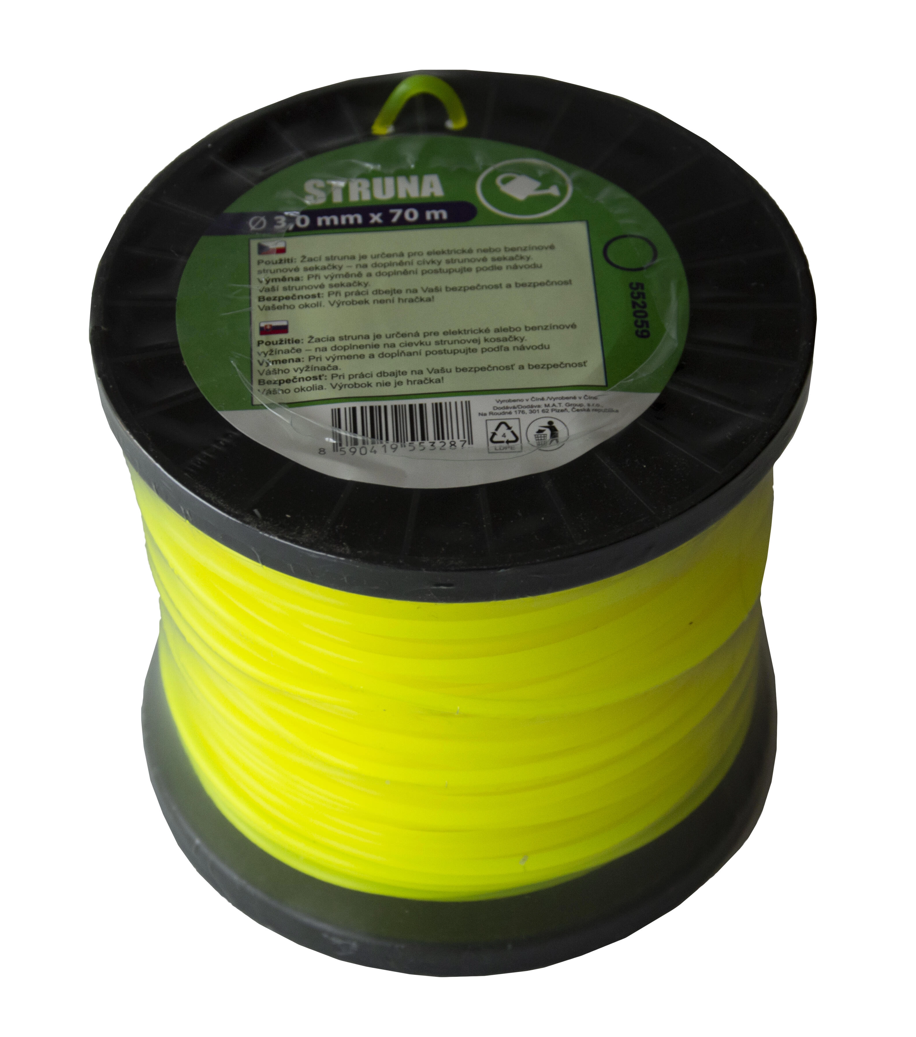 Materialul din nylon de calitate garantează durată de viață lungă, flexibilitate și rezistență la abraziune. Bobina de 70 m permite reîncărcare ușoară și exploatare economică, chiar și în utilizare frecventă.