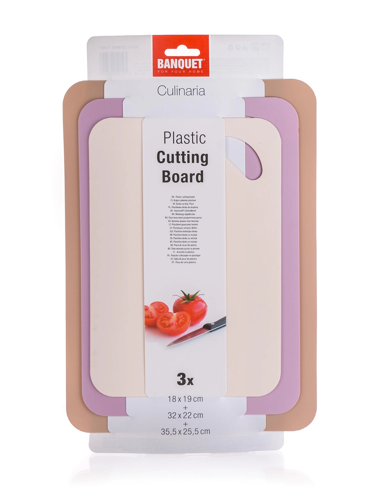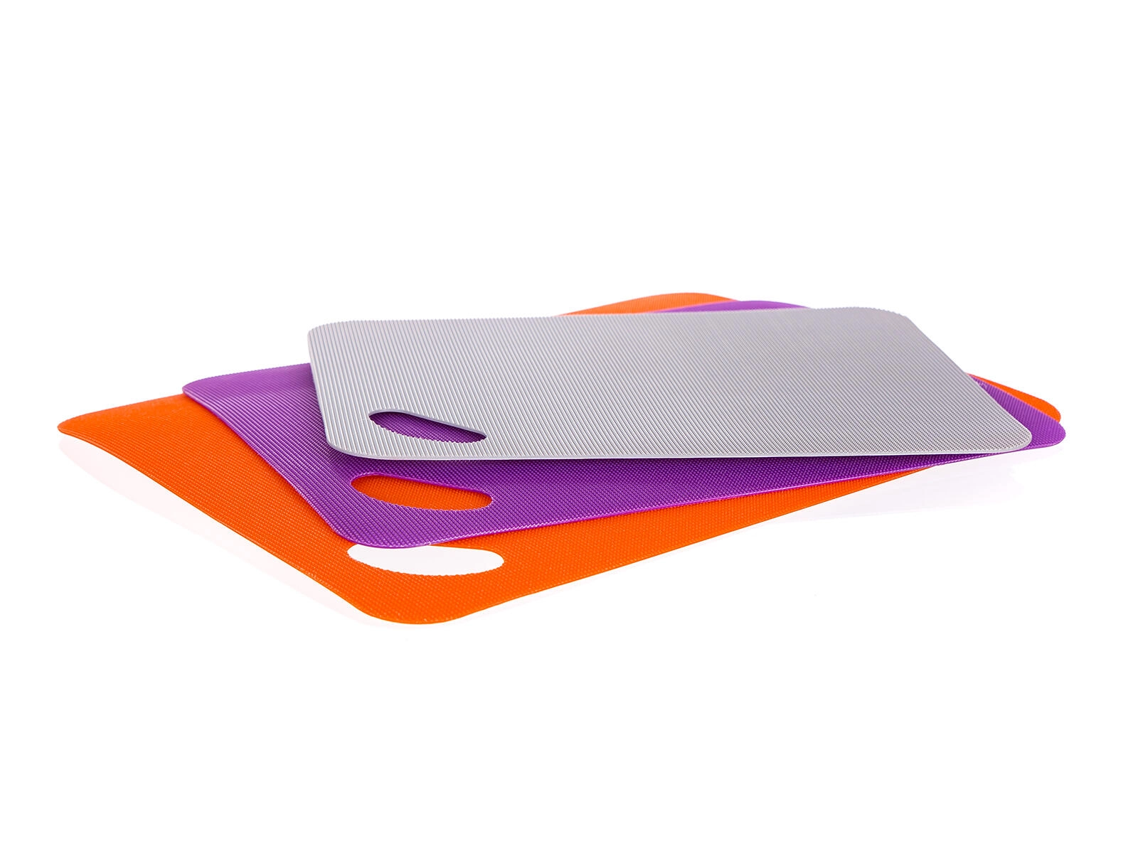 Setul conține 3 tocătoare (aprox. 27,9 cm, 32 cm și 35,5 cm), astfel alegi ușor suprafața ideală atât pentru tăieri mici, cât și pentru porționări mai mari.