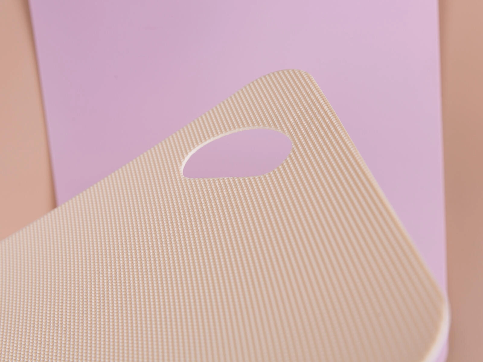 Plasticul texturat oferă aderență mai bună a ingredientelor și o tăiere mai sigură, fiind în același timp blând cu muchia cuțitelor și neabsorbant.