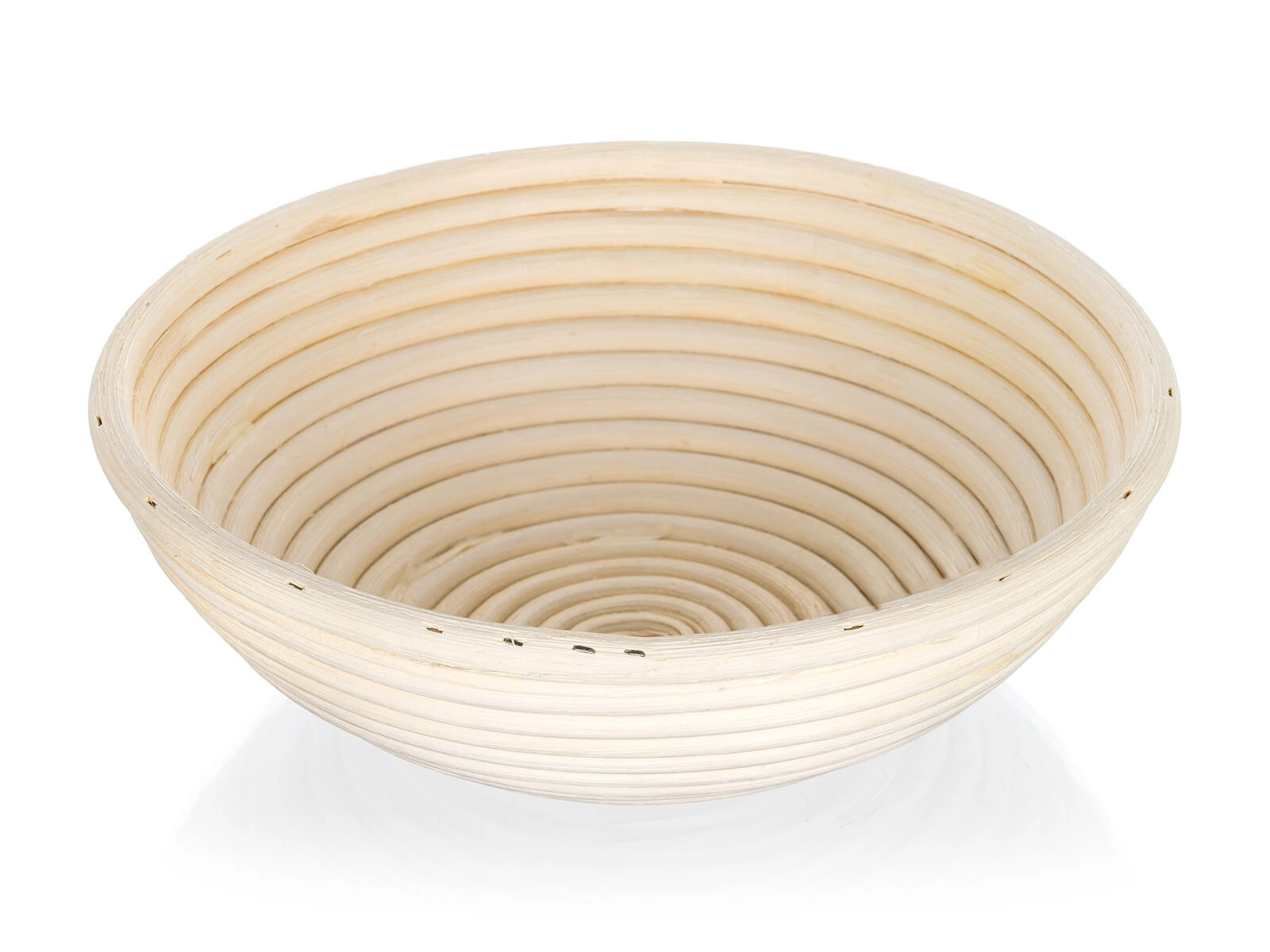 Coș rotund practic din ratan natural, cu diametrul de 25 cm și înălțimea de 8 cm, pentru coacere acasă sau profesională. Ajută aluatul să-și păstreze forma, asigură o mai bună circulație a aerului și creează pe crustă un atrăgător model spiral. Întreținere ușoară – este suficient să îl ștergeți după utilizare cu un prosop umed. Ideal pentru dospirea pâinii și a pâinilor rustice.