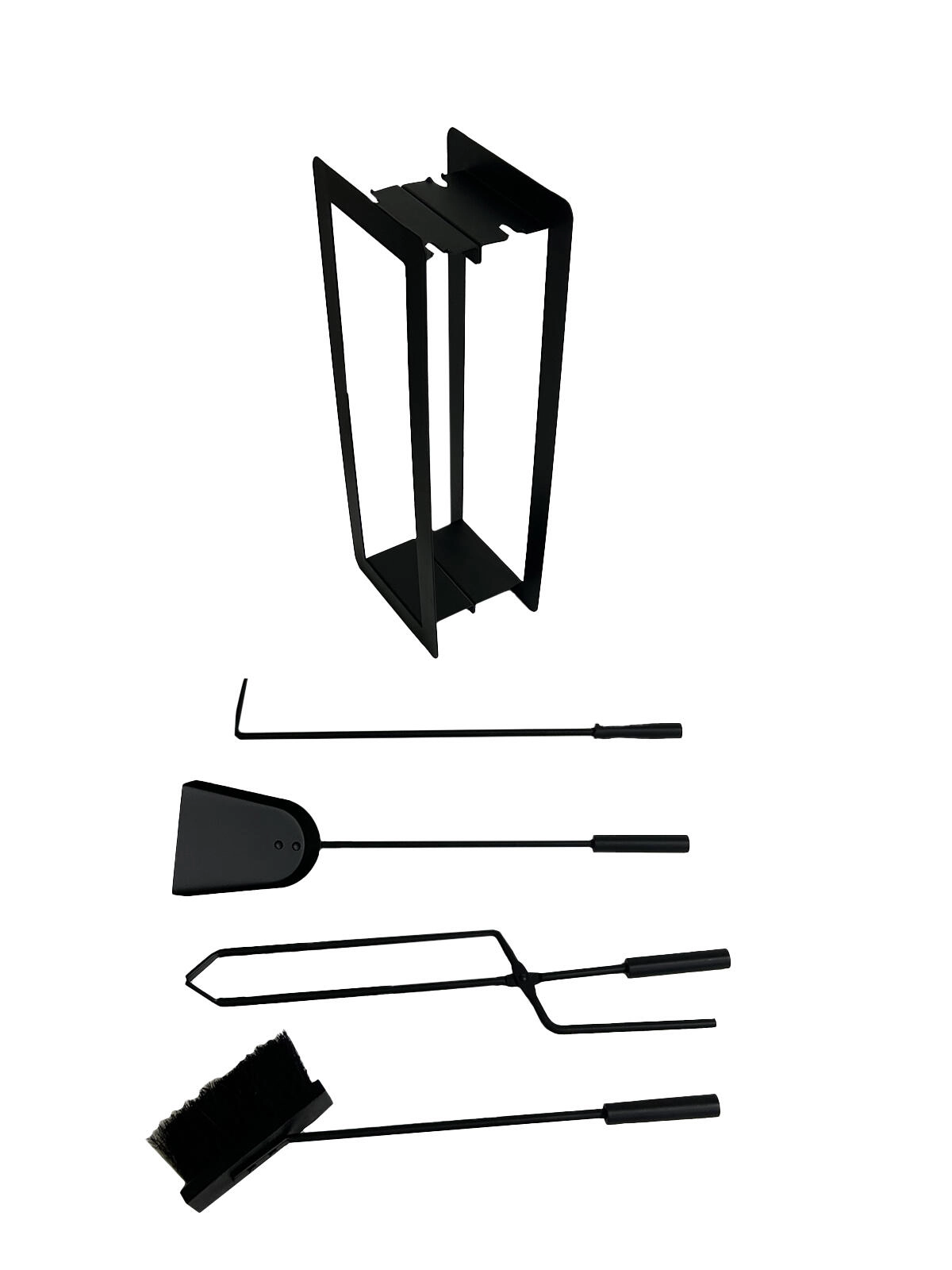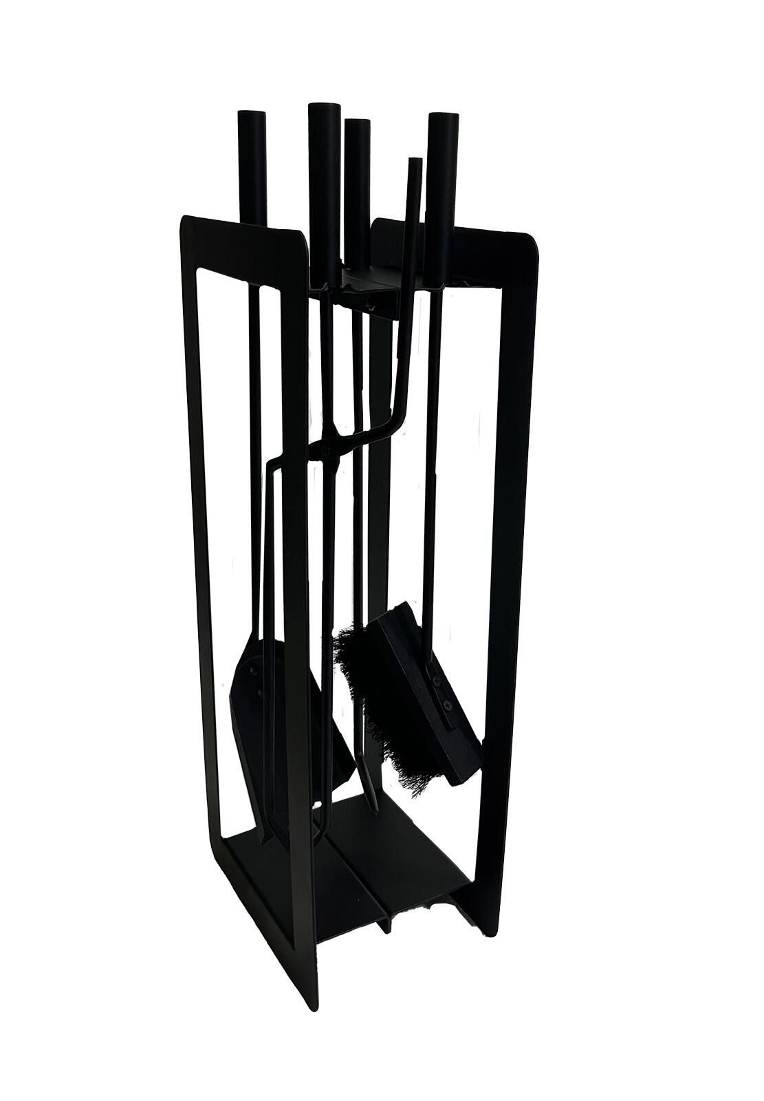 Stativul metalic deschis păstrează uneltele mereu la îndemână și menține spațiul din jurul șemineului curat și îngrijit.