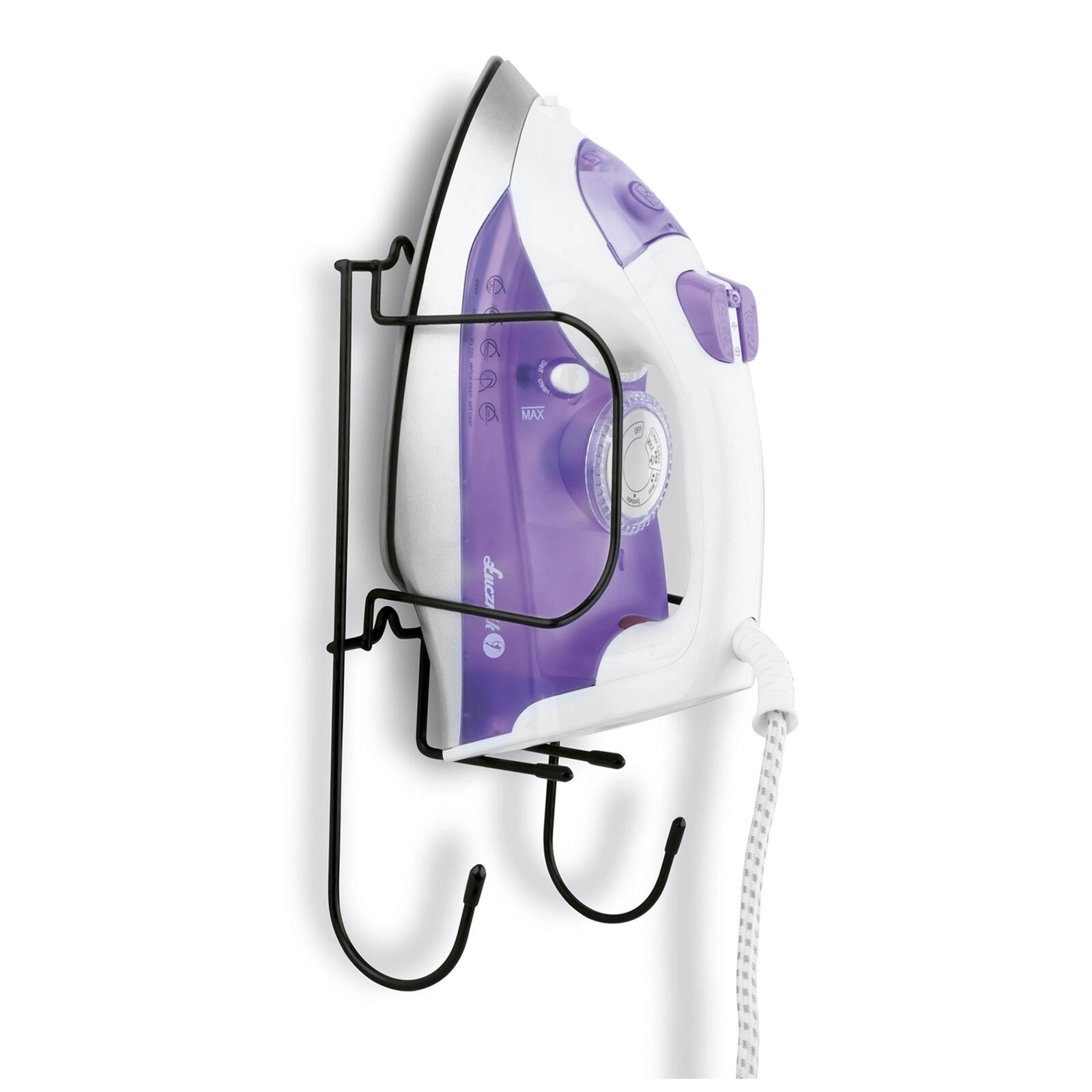 Suportul superior fixează în siguranță fierul de călcat, iar cârligele inferioare sunt ideale pentru agățarea mesei de călcat sau pentru rularea cablului, pentru o ordine maximă.