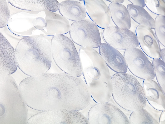 Zeci de ventuze pe partea inferioară mențin covorașul ferm pe poziție și reduc semnificativ riscul de alunecare pe suprafețele umede.