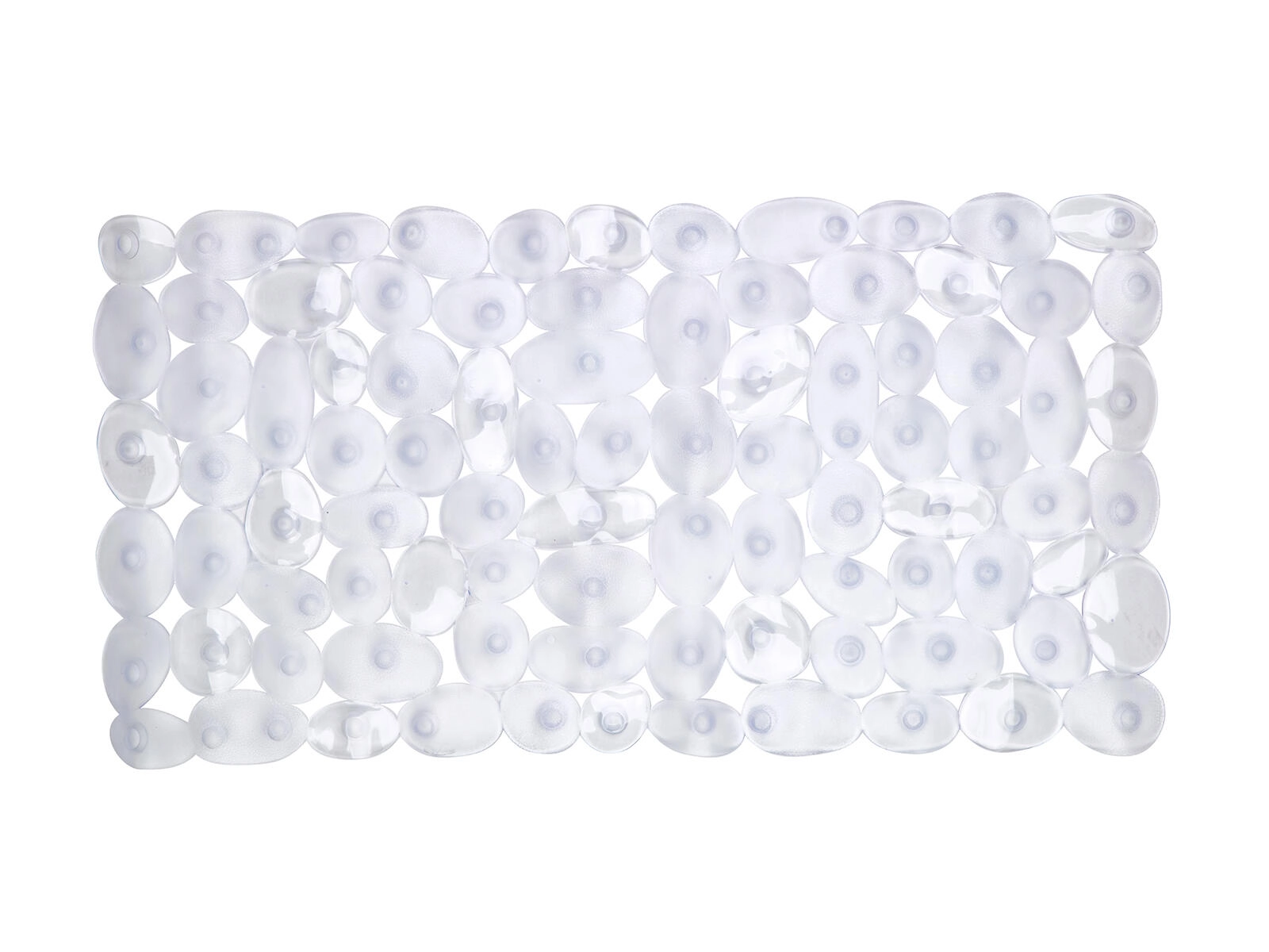 Covorașul antiderapant practic, cu dimensiunile 70 × 36 cm, oferă stabilitate în cadă și în cabina de duș. Ventuzele dese de pe partea inferioară asigură o aderență fiabilă și minimizează riscul de alunecare pe suprafețele umede. Execuția transparentă este discretă și se potrivește cu orice tip de dotări de baie.