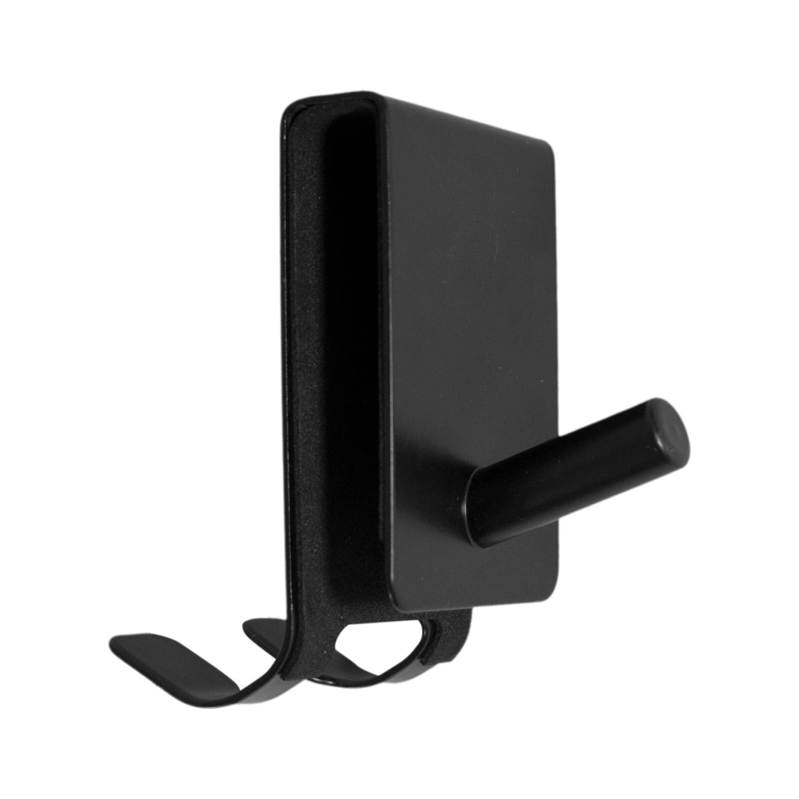 Cârlig practic și elegant pentru ușa de duș, din oțel inoxidabil durabil, în culoare neagră. Se agață ușor fără găurire și oferă loc pentru prosoape, bureți de baie sau bureți de spălat. Datorită dimensiunilor compacte economisește spațiu, iar designul modern se potrivește în orice baie.