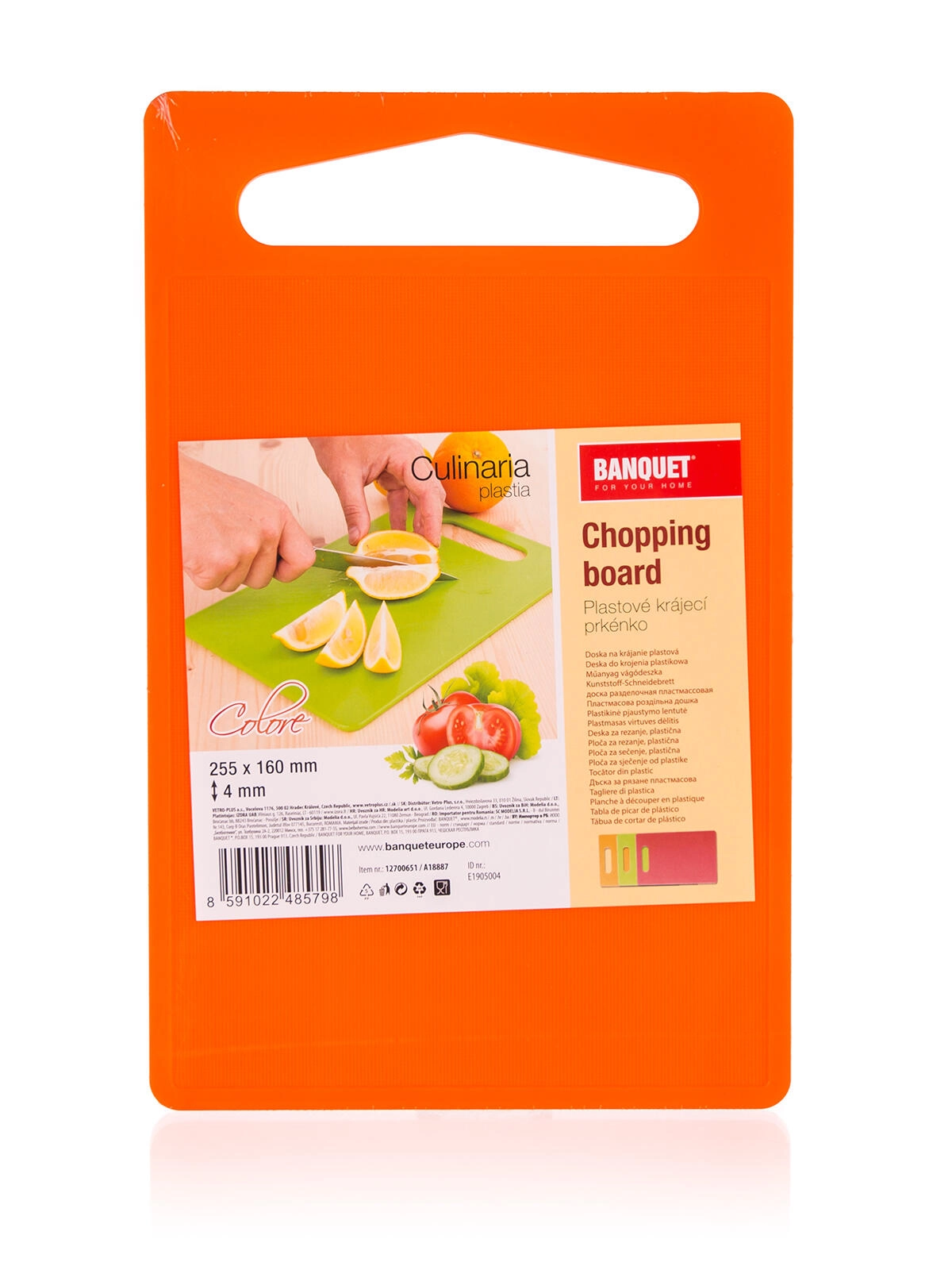 Tocător practic din polipropilenă rezistentă, în dimensiunea compactă 25,5 × 16 cm, ideal pentru utilizare zilnică. Oferă întreținere ușoară, se poate spăla în mașina de spălat vase și este disponibil într-un mix de culori pentru a se potrivi cu bucătăria ta.
