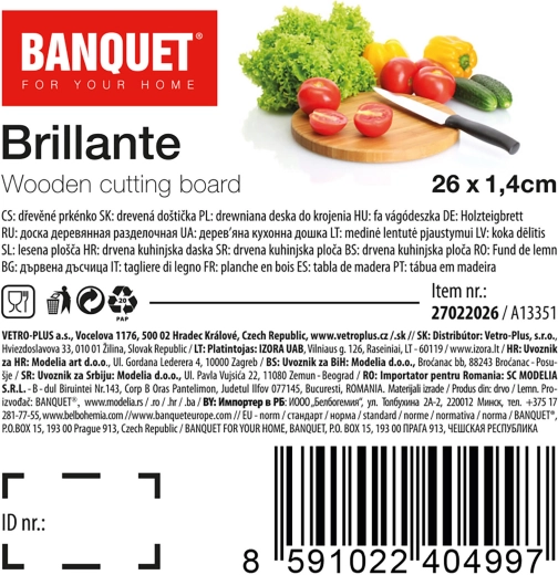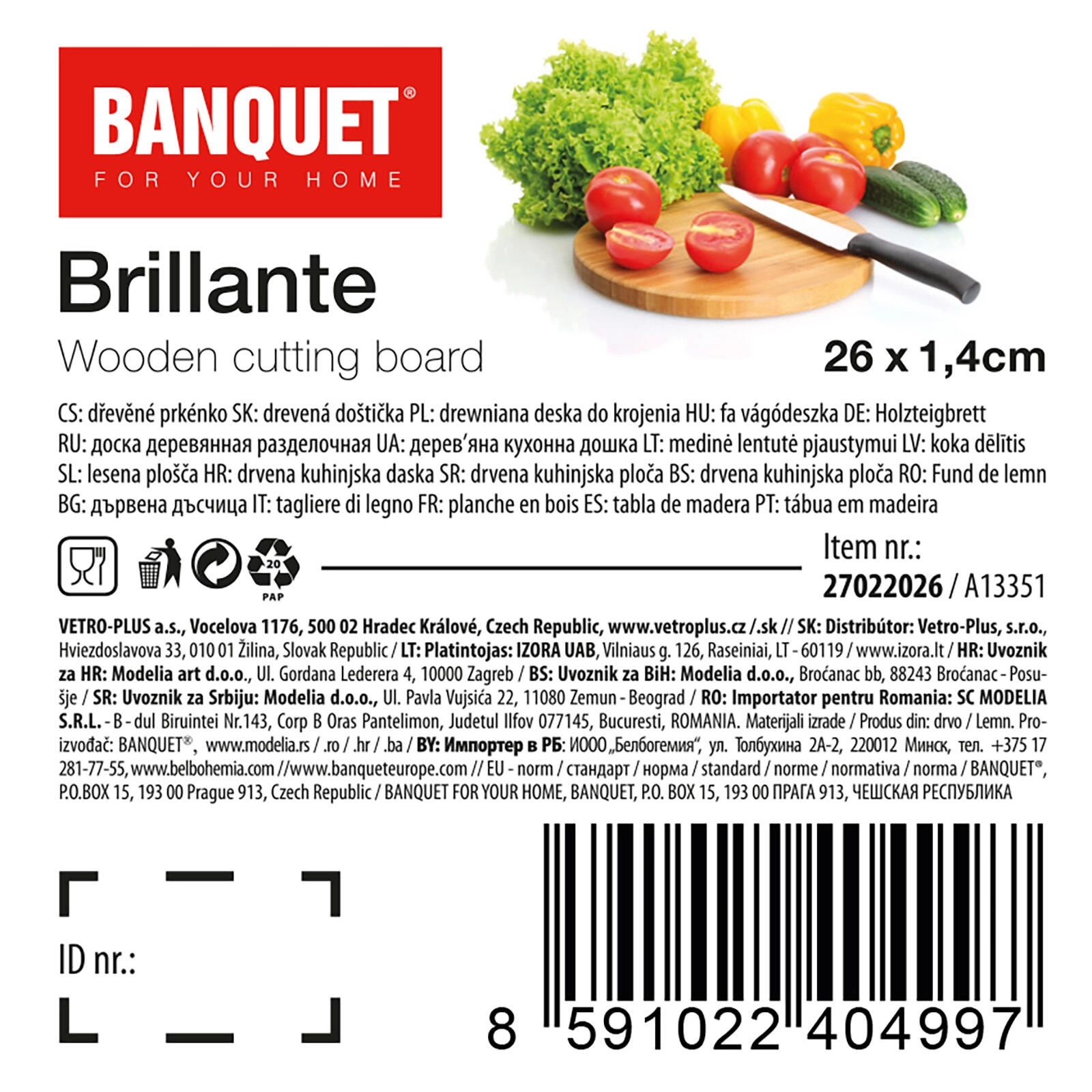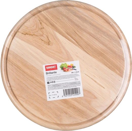 Acest toc de tăiat rotund BRILLANTE este fabricat din lemn de mesteacăn de înaltă calitate. Datorită canelurii perimetrale reține sucurile din fructe, legume sau carne și menține blatul de lucru curat. Diametrul de 26 cm oferă spațiu suficient pentru pregătire și pentru servirea stilată a brânzeturilor, mezelurilor sau produselor de panificație.