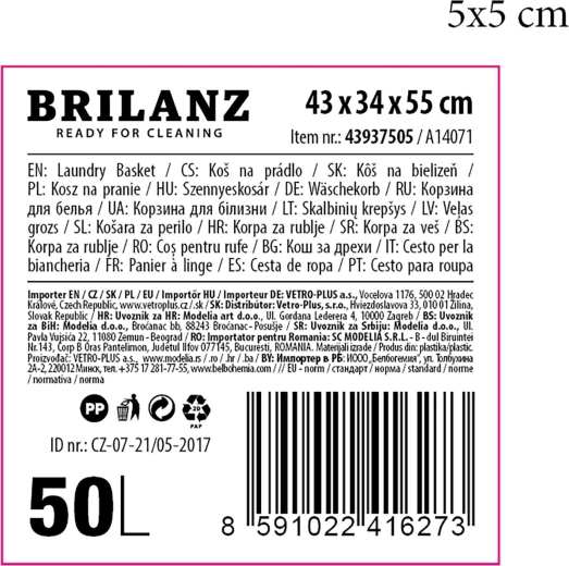 Datorită plasticului de calitate, coșul este ușor, dar rezistent și ușor de curățat. Dimensiunile practice de 55 × 43 × 34 cm facilitează amplasarea chiar și în încăperi mai mici.