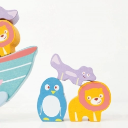 Această arca de echilibru frumos colorată include zece animale pictate manual pe care copiii le așează pe barcă, îmbunătățindu-și astfel coordonarea mână-ochi și îndemânarea. Setul de animale și barcă este realizat din lemn sustenabil certificat FSC și este pictat cu vopsele non-toxice pe bază de apă.