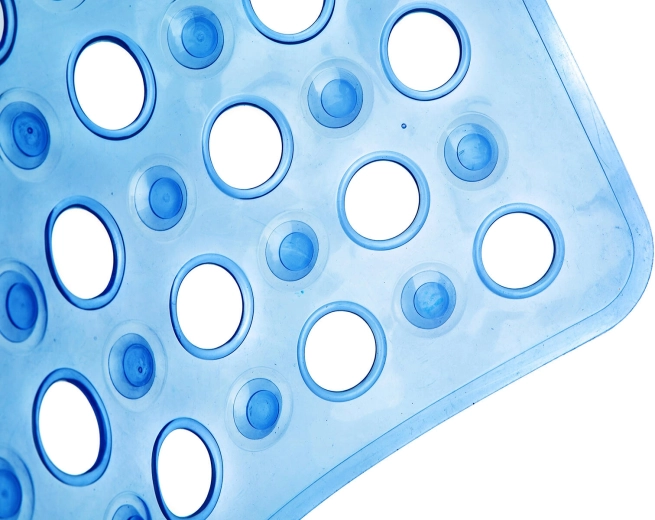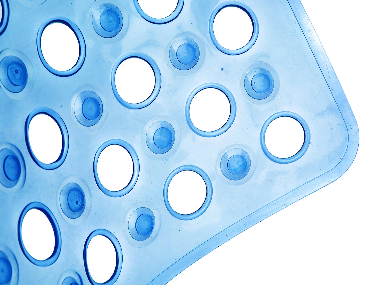 Bucură-te de un duș confortabil și sigur cu covorașul pentru cadă CIRCLE, în culoare albastru transparent. Ventuzele dese de pe partea inferioară asigură o aderență stabilă la suprafața căzii, în timp ce textura antiderapantă minimizează riscul de alunecare. Designul transparent discret se potrivește cu ușurință în orice baie.