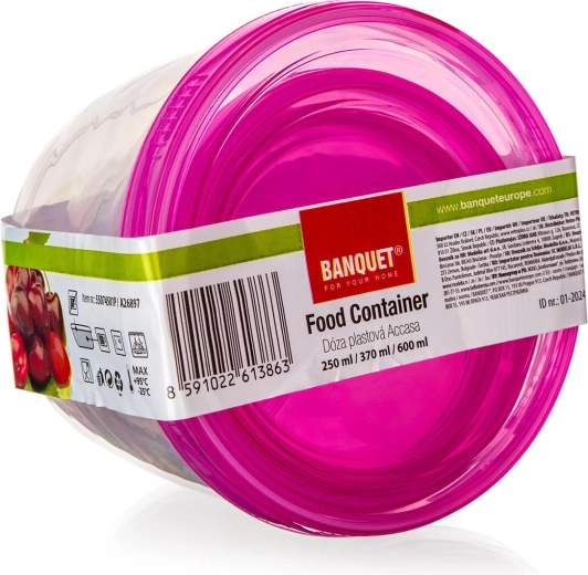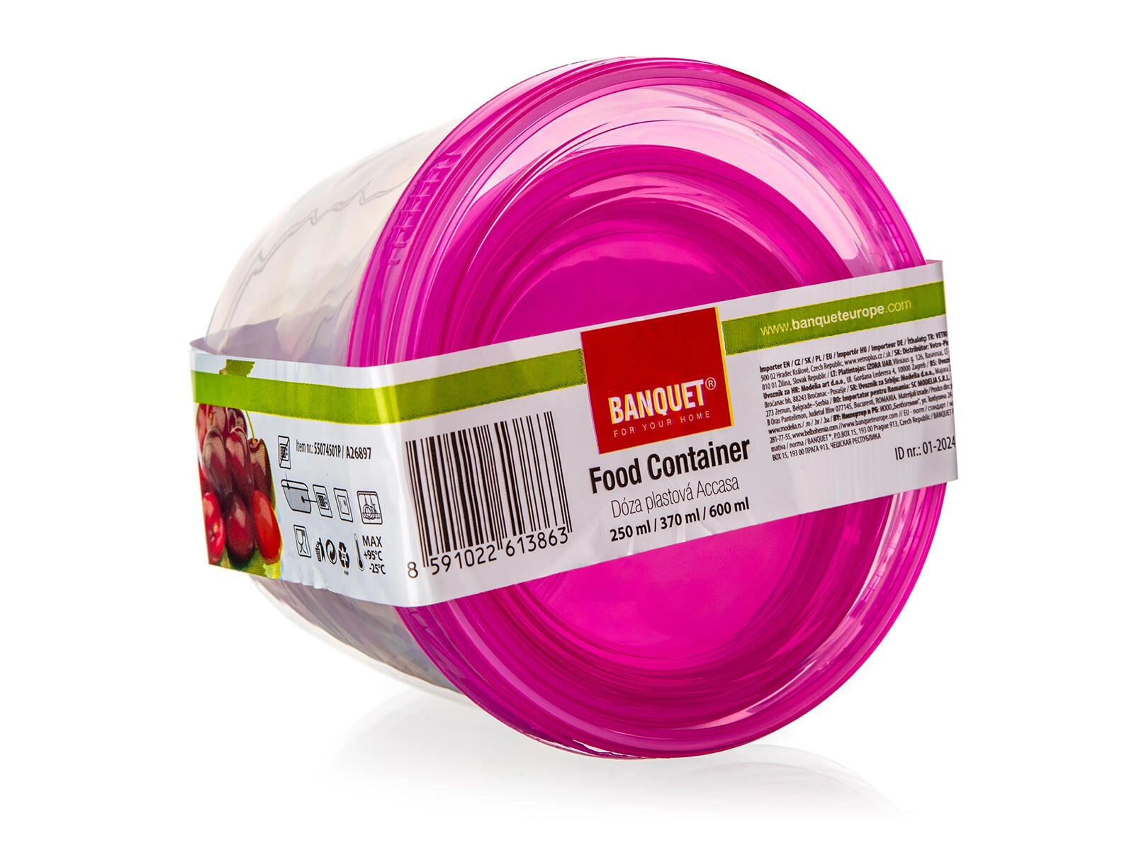 Set practic cu trei recipiente rotunde, cu volume de 250 ml, 370 ml și 600 ml, pentru utilizare zilnică în bucătărie. Corpul transparent oferă o vedere clară asupra conținutului, iar capacul cu filet ajută la menținerea prospețimii. Recipiente compatibile cu mașina de spălat vase, congelatorul și cuptorul cu microunde, economisind timp și spațiu.