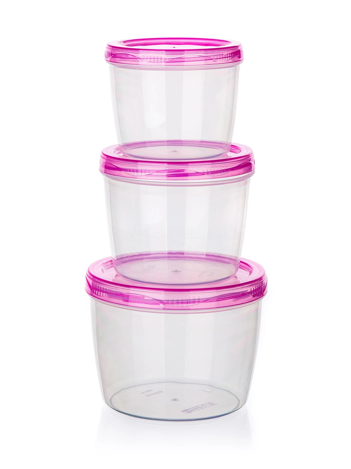 Păstrați ordinea în frigider, congelator și cămară. Acest set compact de recipiente rotunde oferă trei dimensiuni practice pentru resturi, gustări și porționare. Datorită corpului transparent, vedeți mereu ce este în interior.