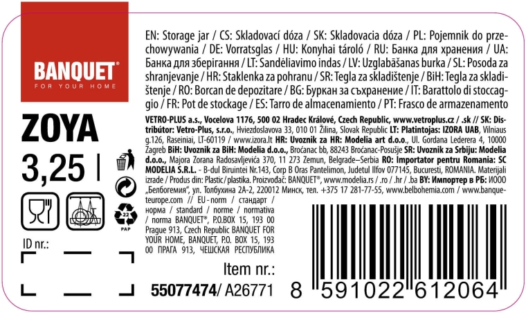 Cutia practică din plastic Zoya, cu un volum de 3,25 l, capac fumuriu și mâner integrat, este ideală pentru depozitarea alimentelor precum orez, paste, cereale sau tăiței pentru supă. Datorită corpului transparent ai mereu vizibilitate asupra conținutului, iar capacul etanș ajută la menținerea prospețimii. Cutiile pot fi stivuite ușor, economisind spațiu în cămară și pe blatul din bucătărie.