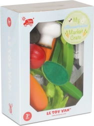 Descoperă farmecul jocului de-a magazinul cu o lădiță din lemn plină cu legume de la LE TOY VAN. Piese atent lucrate precum morcov, ridiche, ciuperci champignon și dovlecel stimulează imaginația, motricitatea fină și învățarea despre alimentația sănătoasă. Fabricat din lemn sustenabil și vopsit cu vopsele pe bază de apă, netoxice – o alegere sigură pentru mâinile mici.