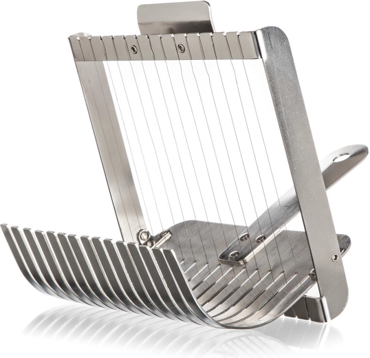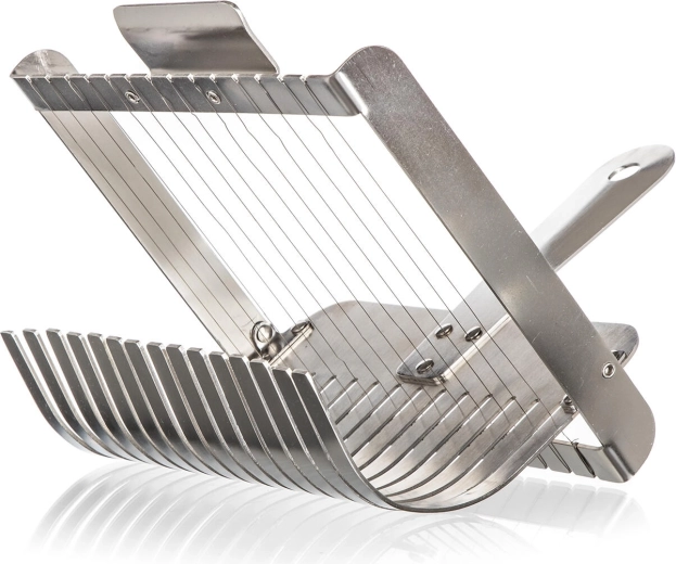 Ajutor de nădejde pentru fiecare zi – feliatorul cu sârmă AKCENT este conceput pentru utilizare profesională și casnică. Construcția robustă din inox rezistă utilizării frecvente, iar sârmele taie felii curate și simetrice fără lipire. Designul ergonomic cu paletă accelerează manipularea gogoșilor fierbinți și îmbunătățește siguranța și confortul la servire.