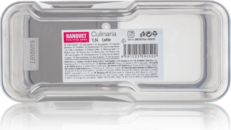 Capacul cu închidere strânsă ajută la menținerea alimentelor proaspete mai mult timp, iar pereții transparenți oferă o imagine clară a conținutului.