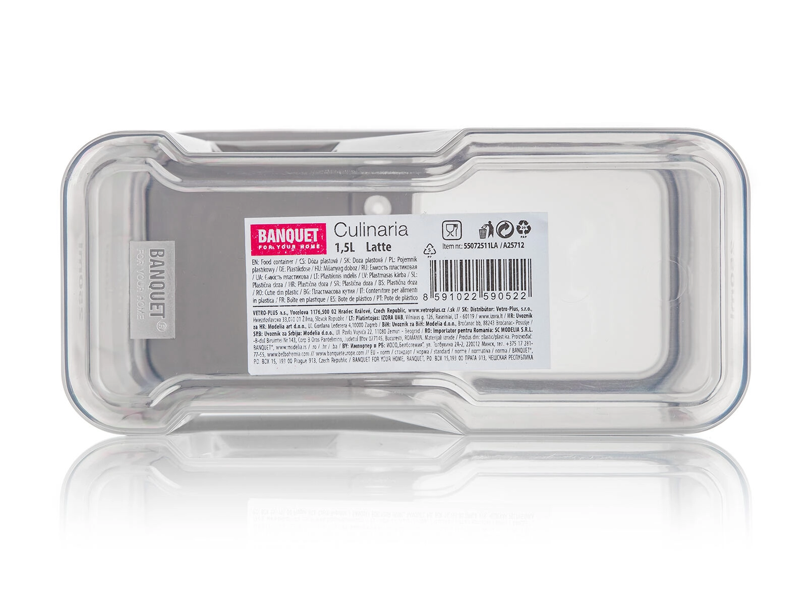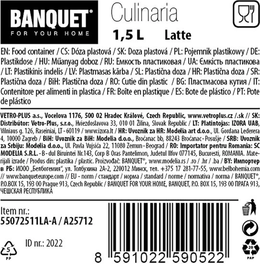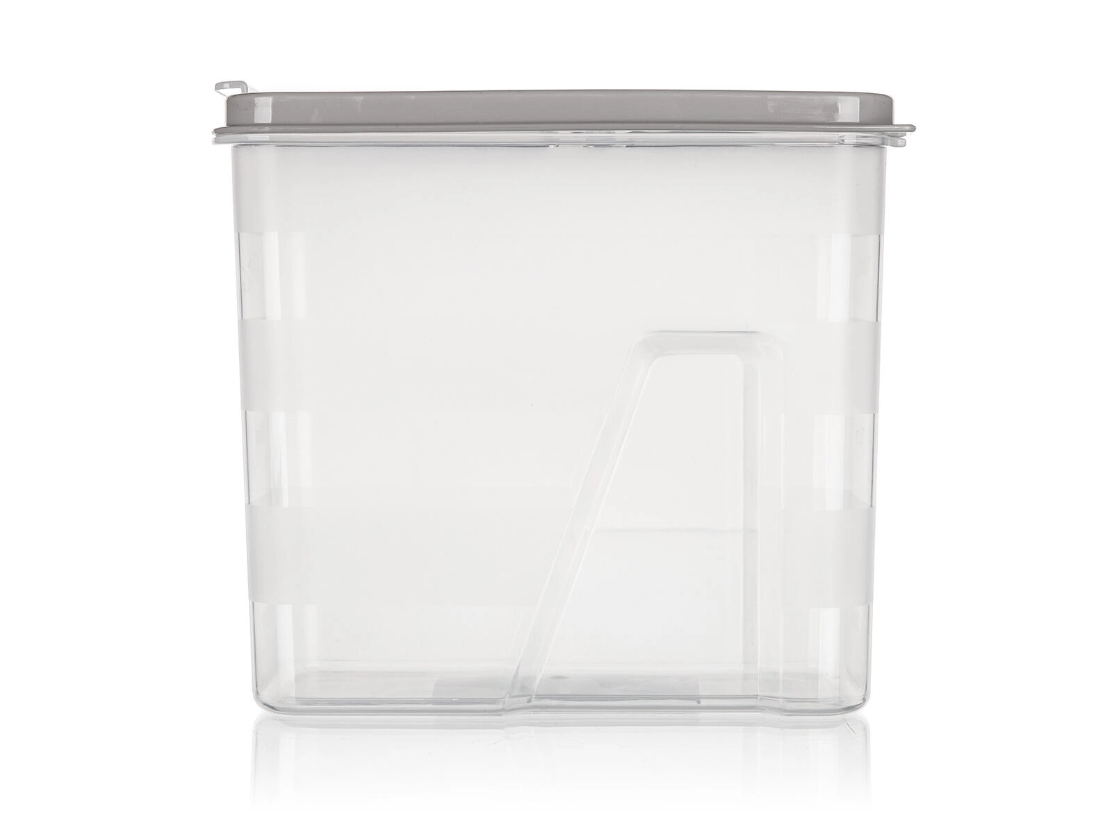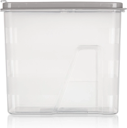 Plasticul rezistent este ușor, ușor de întreținut și ajută la păstrarea alimentelor proaspete mai mult timp. Doza este modelată pentru a sta stabil pe rafturi și în sertare și se combină excelent cu alte doze pentru un aspect unitar și organizat al bucătăriei.
