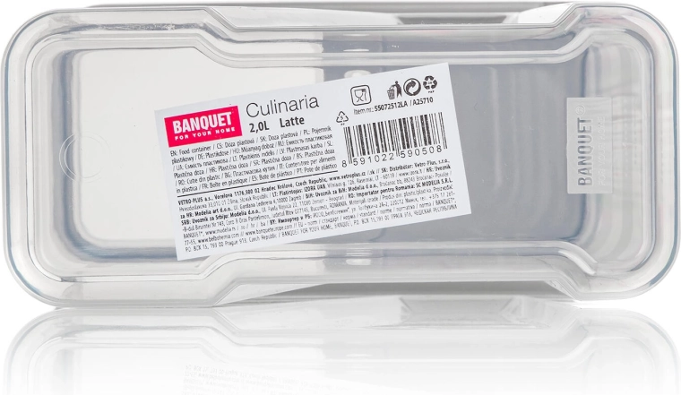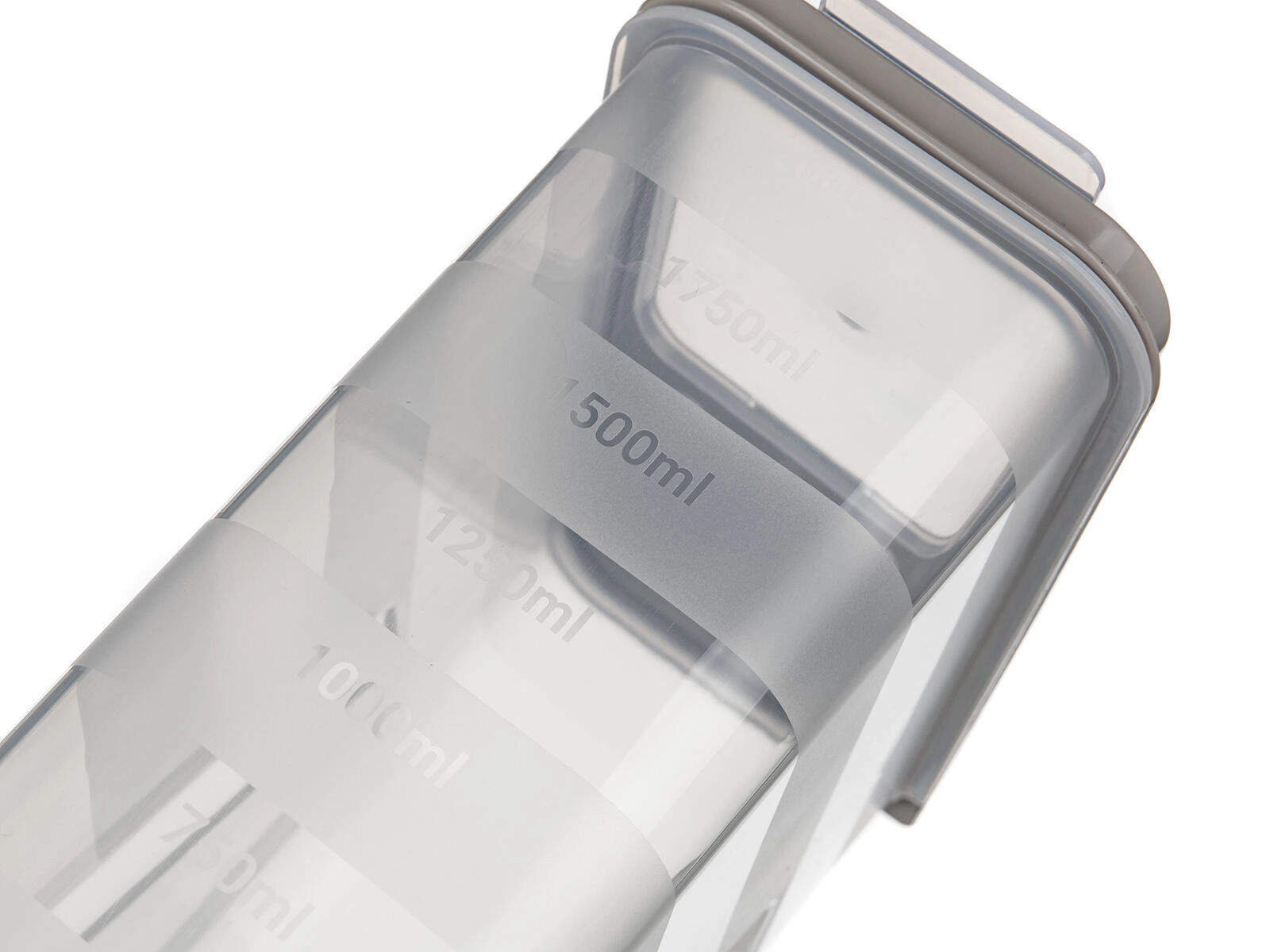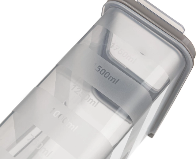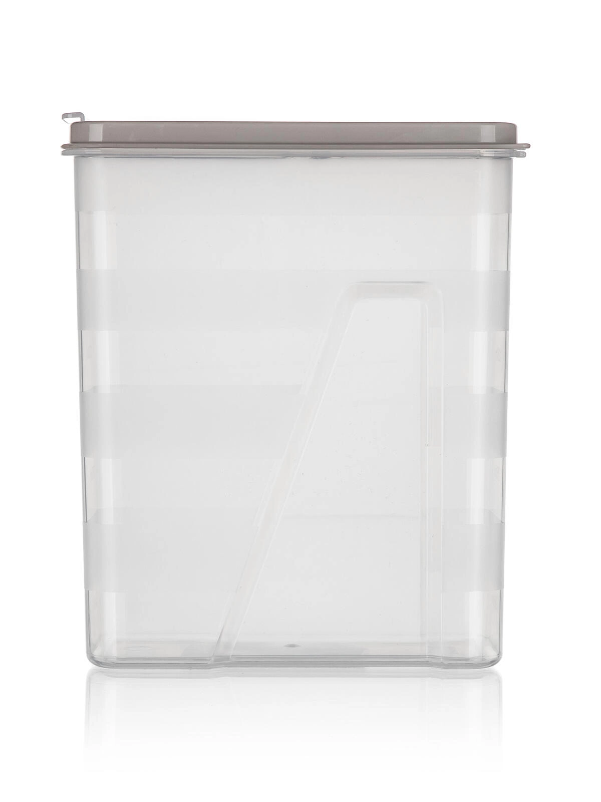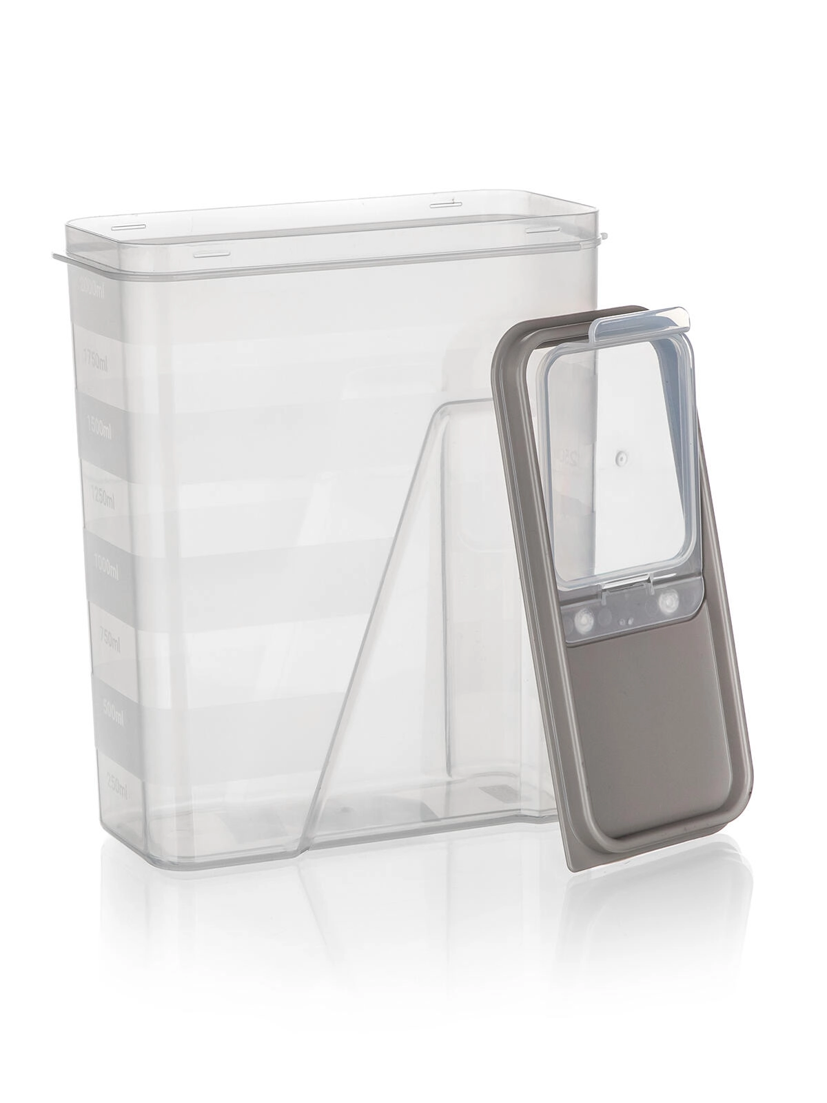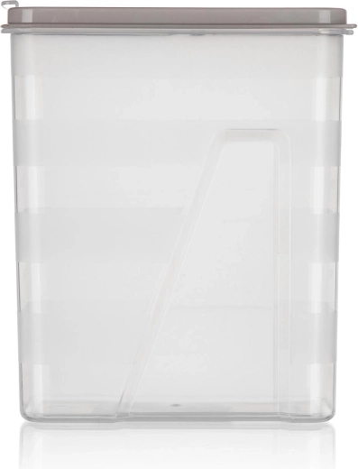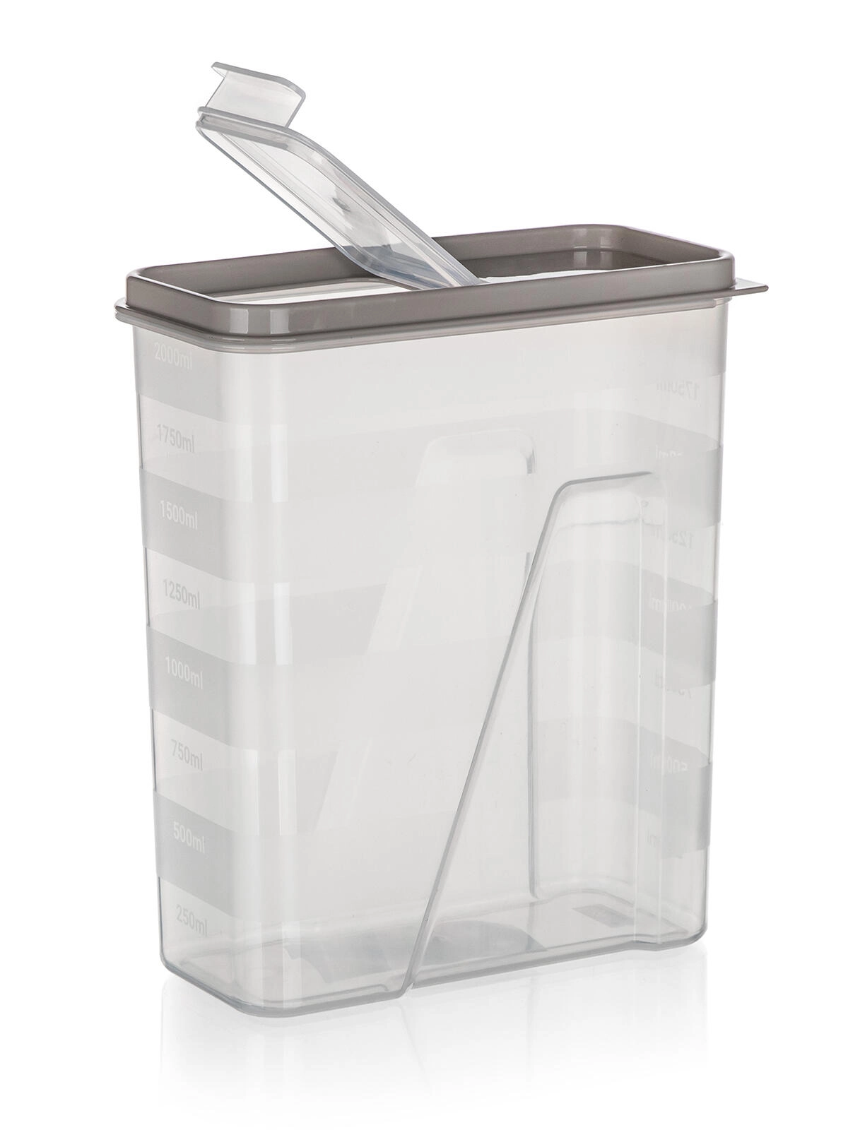 Această cutie transparentă din plastic de 2 l este ideală pentru depozitarea pastelor, leguminoaselor, orezului, făinii și cerealelor. Datorită corpului transparent, ai mereu conținutul sub control, iar scala integrată la 250 ml ajută la măsurarea exactă a cantității necesare.
