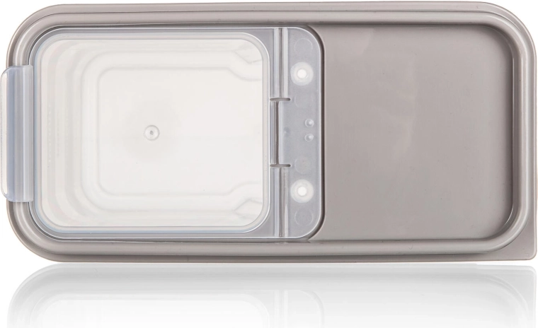 Capacul flip-top în nuanța latte permite deschidere rapidă și dozare comodă, protejând în același timp alimentele de umiditate și mirosuri nedorite. Recipientul are o formă dreptunghiulară economică, care se potrivește perfect în dulapuri și sertare, economisind spațiu în bucătărie.