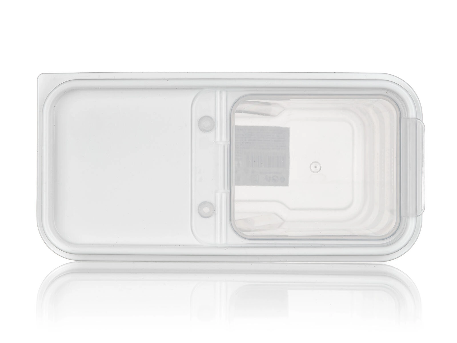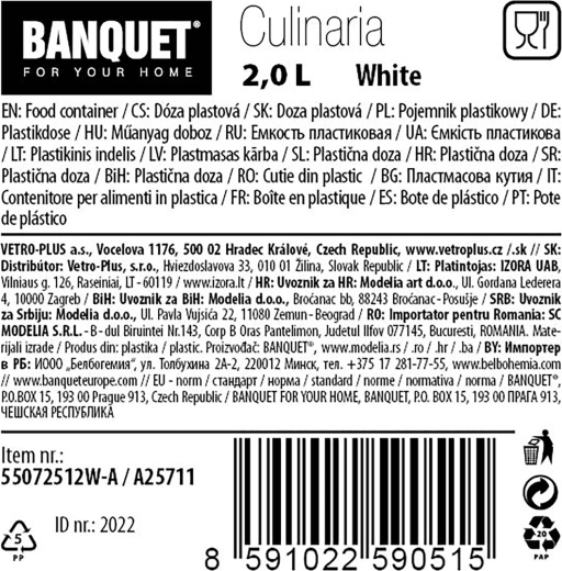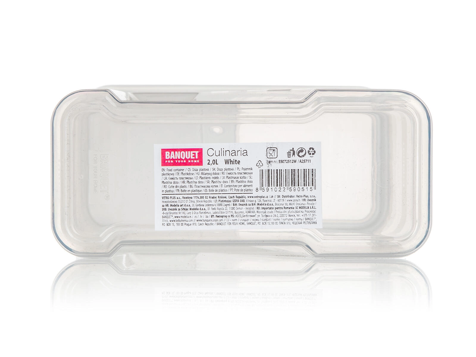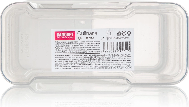 Acest recipient spațios de 2 litri este ideal pentru organizarea zilnică a cămării. Pereții transparenți oferă o verificare vizuală rapidă a conținutului, iar capacul alb cu deschidere practică asigură că alimentele rămân proaspete mai mult timp și protejate de umiditate.