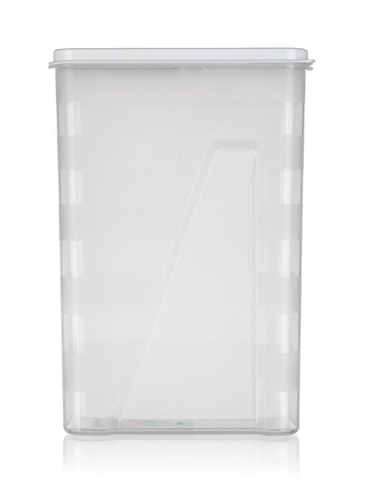 Acest recipient practic din plastic, cu volum de 2,5 litri, este conceput pentru depozitarea ordonată și igienică a alimentelor uscate. Datorită designului transparent vedeți mereu stocul actual, iar cu capacul dozator rabatabil turnați exact cât aveți nevoie – fără dezordine.