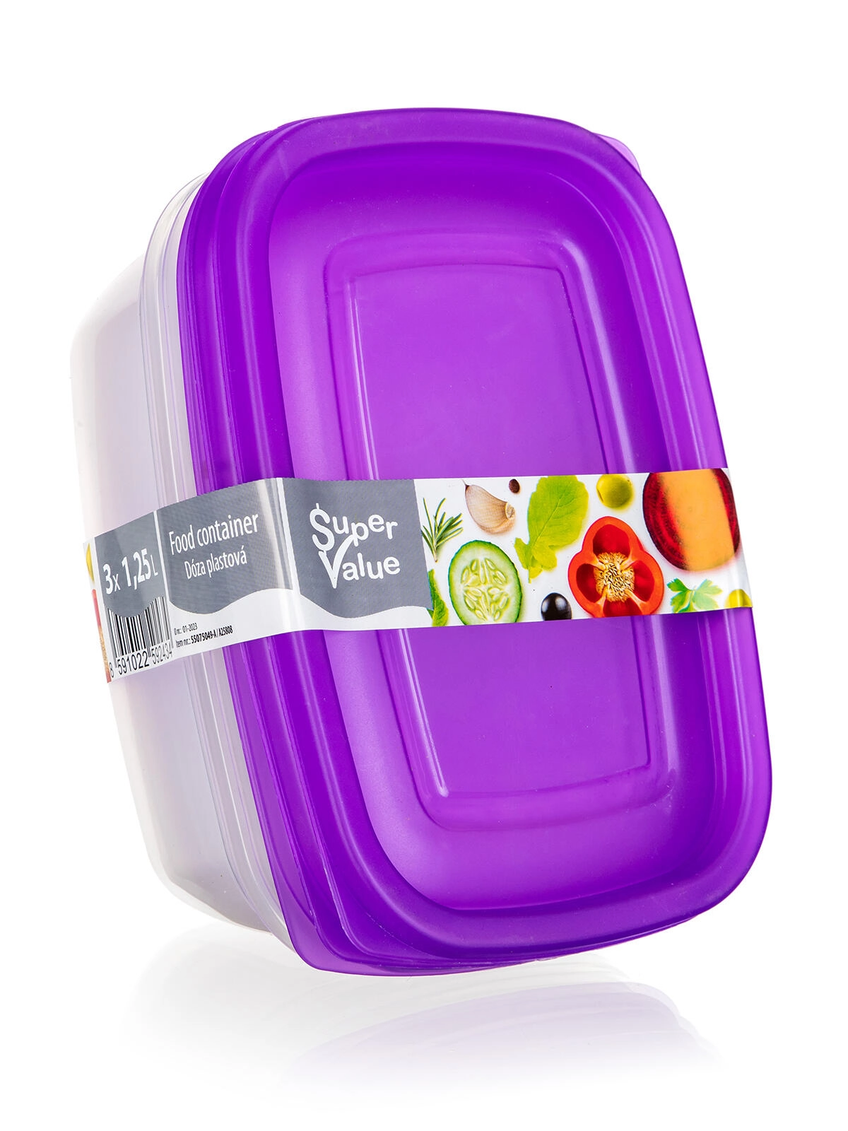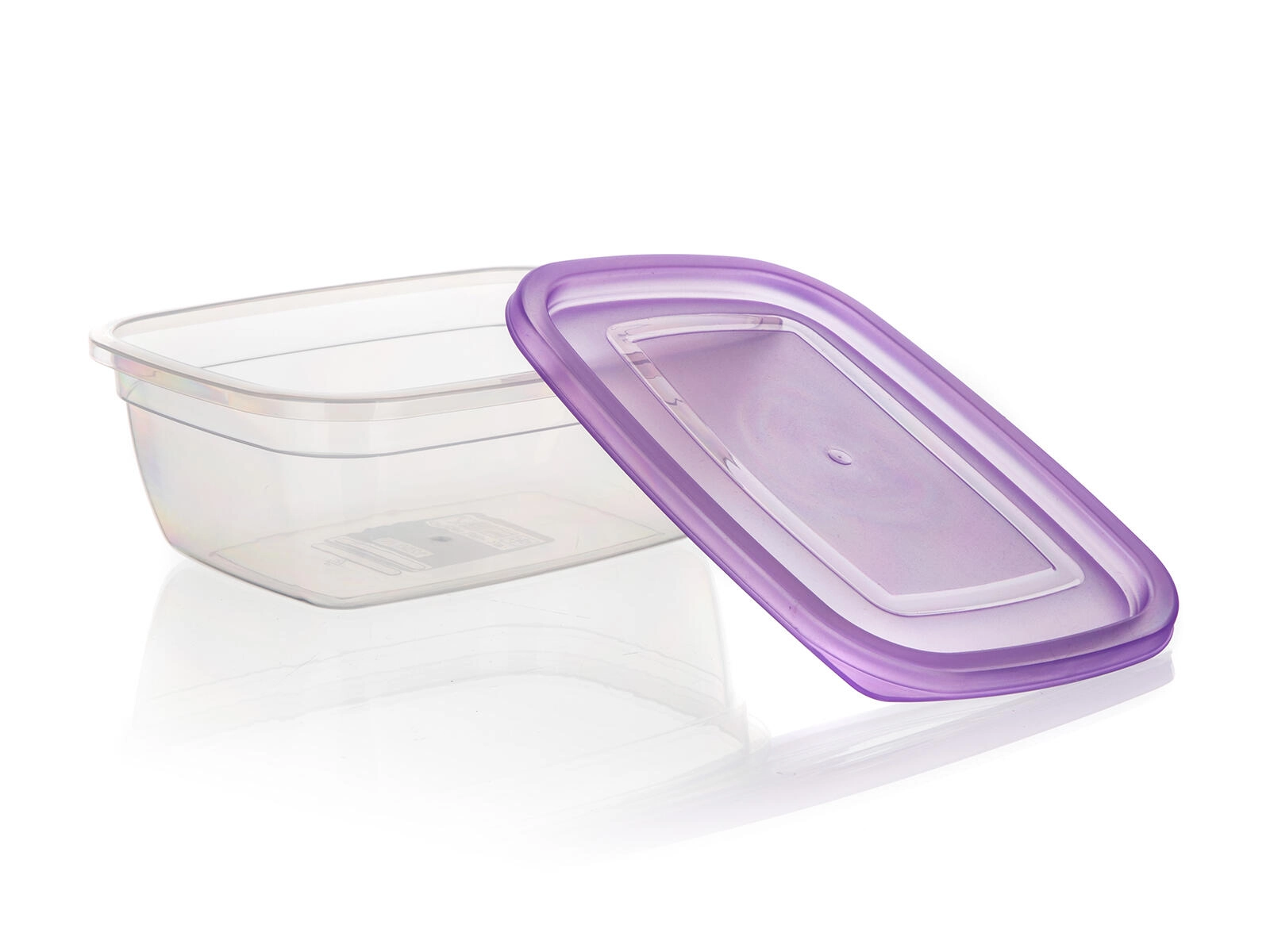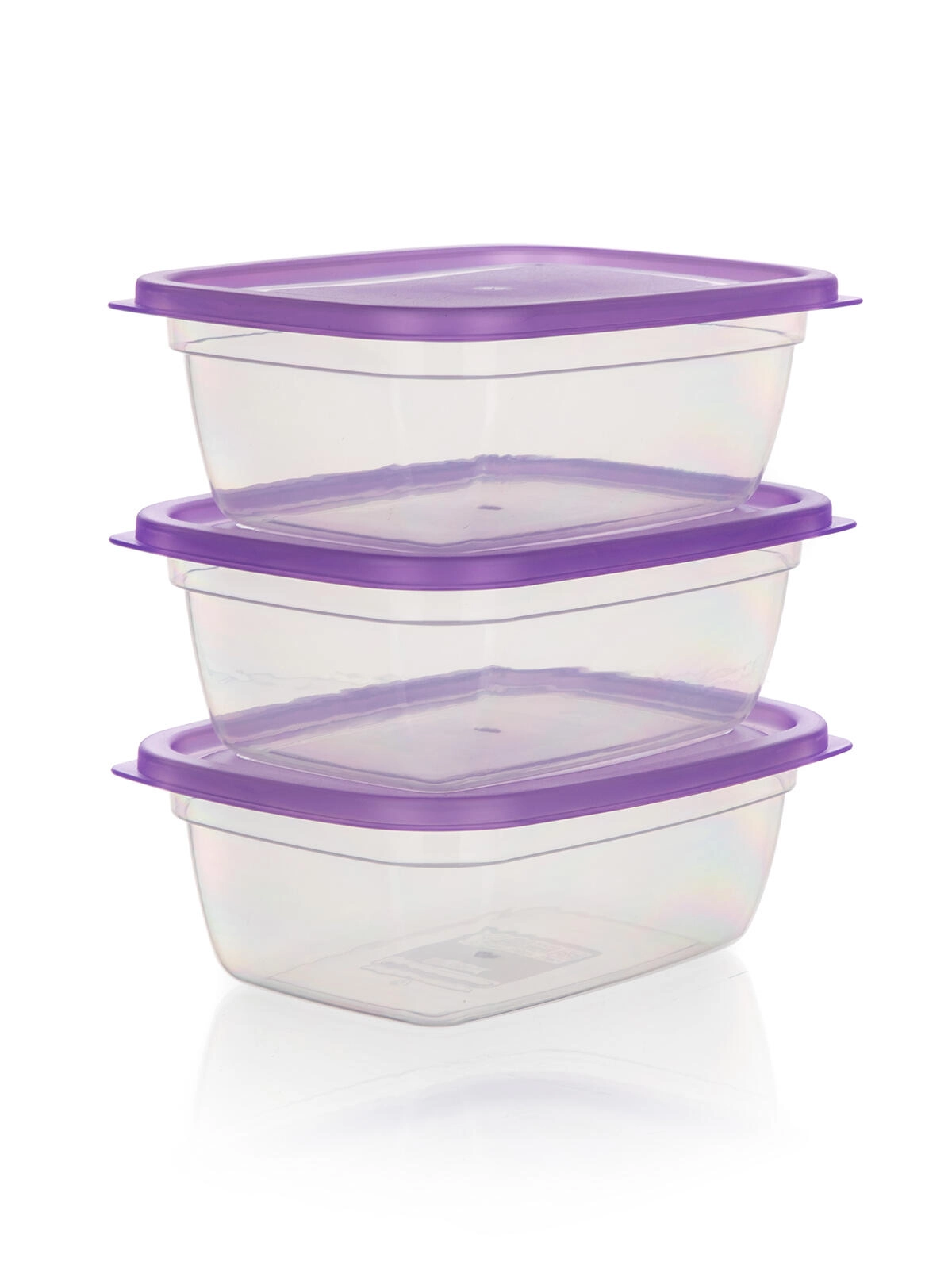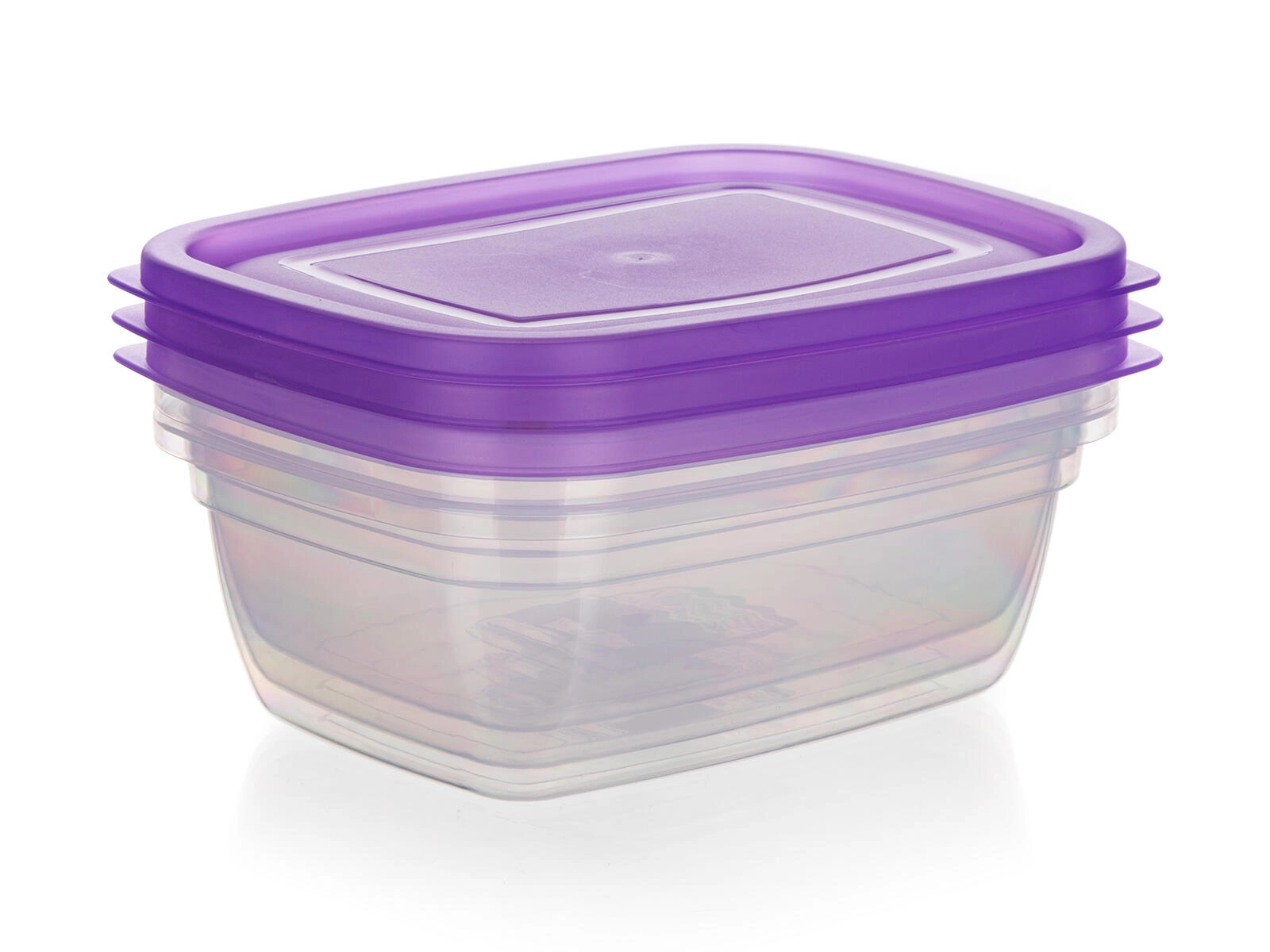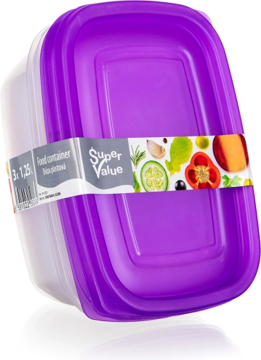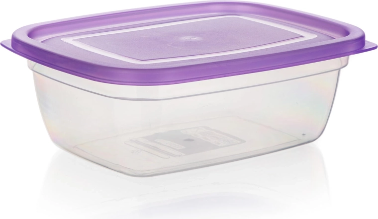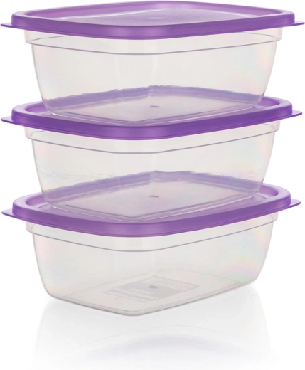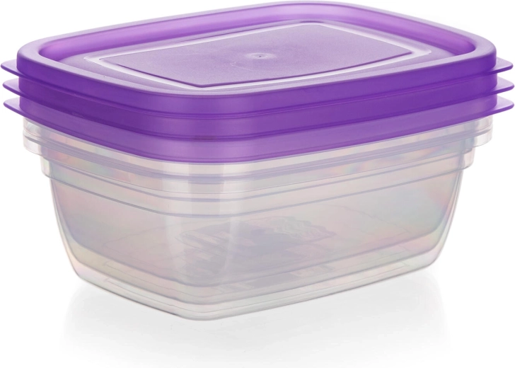 Păstrează ordinea în frigider și cămară cu setul de trei recipiente dreptunghiulare pentru alimente, cu volum de 1,25 l. Corpul transparent permite controlul imediat al conținutului, iar capacele mov rezistente, cu închidere tip clapetă, ajută la menținerea alimentelor mai mult timp proaspete și bine sigilate.