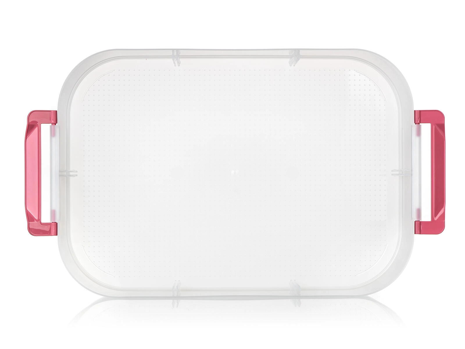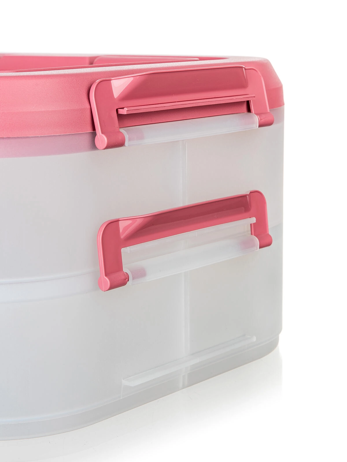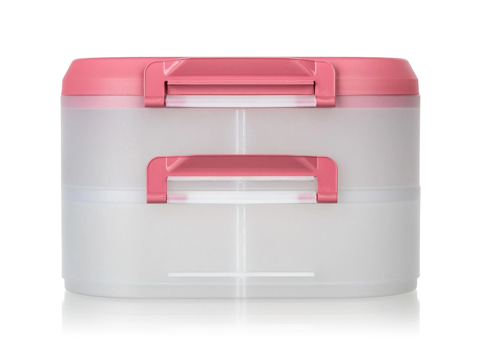 Cutia alimentară practică, pe două niveluri, cu mâner solid pentru transport facil, păstrează mâncarea în siguranță și organizată. Datorită cutiilor transparente vezi mereu conținutul, clemele robuste asigură o închidere etanșă, iar capacul roz cu mâner ușurează transportul la picnic, petreceri sau în călătorii.