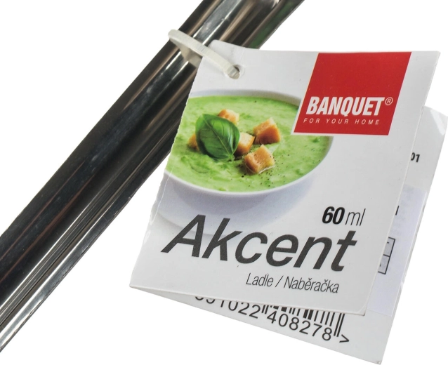 Polonicul practic din inox AKCENT, cu un volum de 60 ml și un diametru de 6,5 cm, ușurează servirea sosurilor și preparatelor lichide. Are cârlig pentru agățare, este potrivit pentru mașina de spălat vase și, datorită peretelui solid de 1 mm, este rezistent pentru utilizare zilnică.