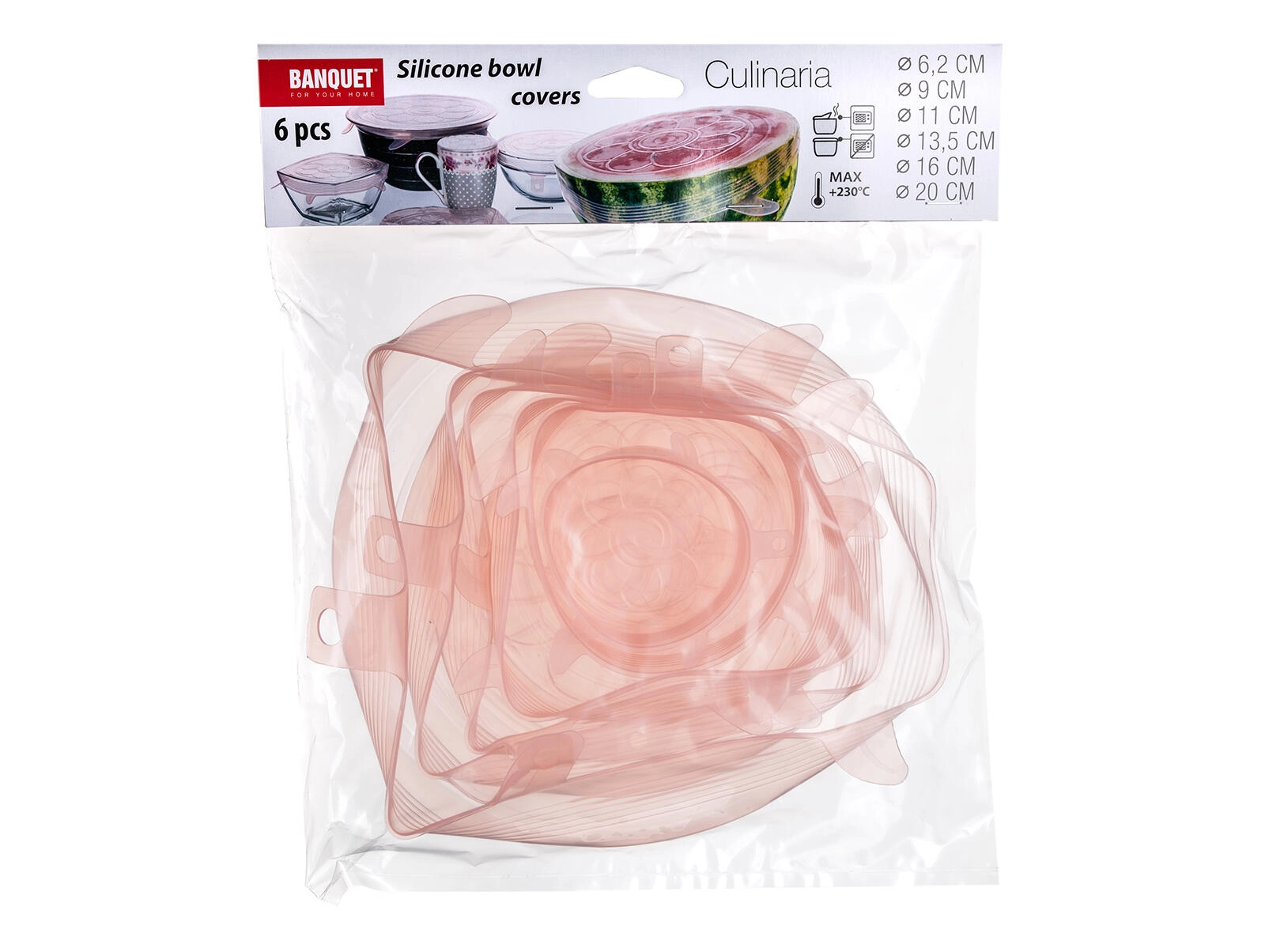 Setul practic de capace din silicon CULINARIA conține șase dimensiuni pentru o gamă largă de recipiente – de la căni și boluri mici până la vase mai mari sau un pepene tăiat. Marginea elastică, cu aderență excelentă, asigură o acoperire strânsă și reduce scăparea mirosurilor și vărsările.