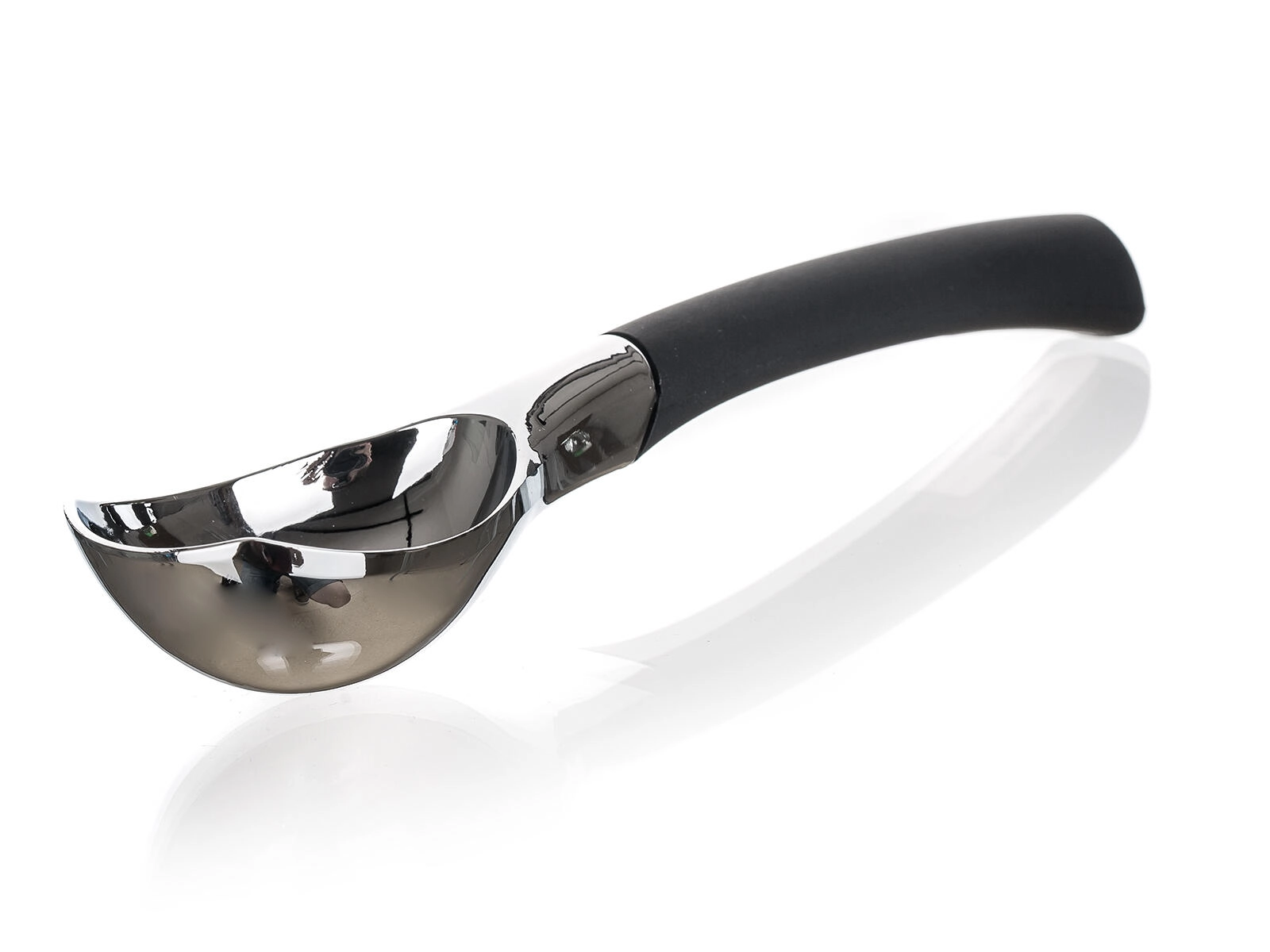 Capul metalic lustruit de la Tinto, cu suprafață cromată, taie ușor chiar și prin înghețata tare și formează bile frumoase, rotunde, fără lipire.