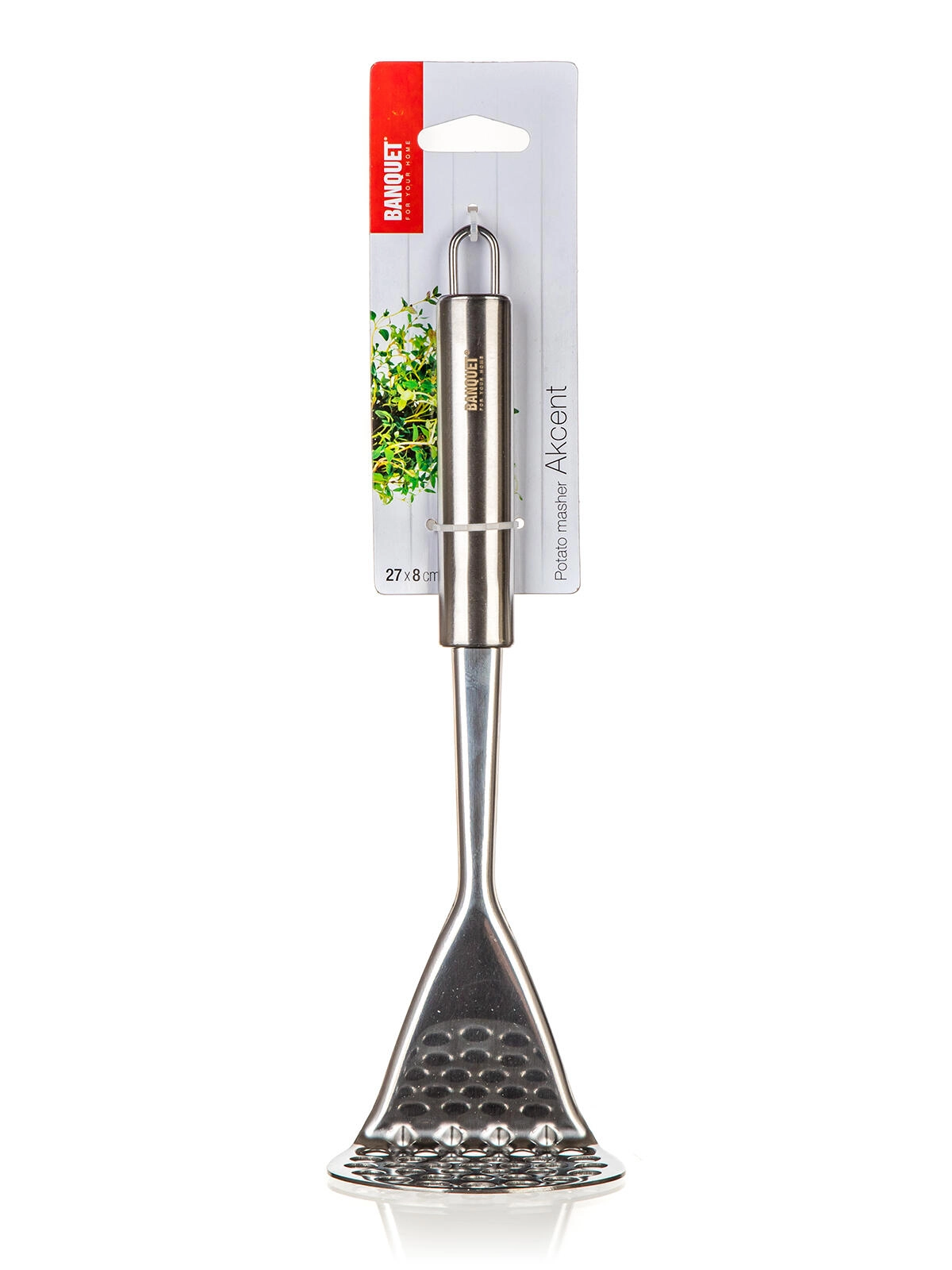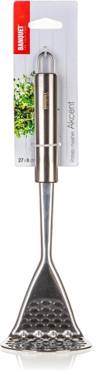 Zdrobitorul pentru cartofi AKCENT din oțel inoxidabil este un ajutor de încredere pentru prepararea unui piure de cartofi fin și a altor garnituri. Materialul rezistent asigură durată de viață îndelungată, iar designul simplu și funcțional se potrivește în orice bucătărie.