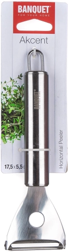 Gama de ustensile de bucătărie AKCENT îndeplinește cerințele profesioniștilor și este ideală și pentru utilizarea zilnică acasă. Curățătorul este prevăzut cu un ochi practic pentru agățare, economisind spațiu și fiind mereu la îndemână. Construcția rezistentă permite spălarea fără probleme în mașina de spălat vase.