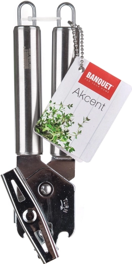 Deschizător de conserve AKCENT cu mecanism clasic cu aripi pentru deschidere rapidă și comodă. Este fabricat din oțel inoxidabil de calitate, oferă durată de viață lungă și, datorită ochiului pentru agățare, este mereu la îndemână. Potrivit pentru utilizare profesională și casnică.