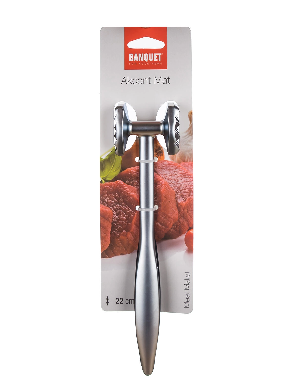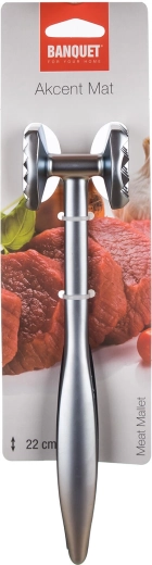 Ciocanul pentru carne AKCENT, cu două fețe, este un ajutor de încredere pentru pregătirea șnițelelor, fripturilor rapide și steak-urilor. O parte a capului este texturată pentru frăgezirea eficientă a fibrelor, iar cealaltă este netedă pentru batere uniformă și nivelarea felilor. Finisajul mat al aluminiului asigură rezistență și curățare ușoară.