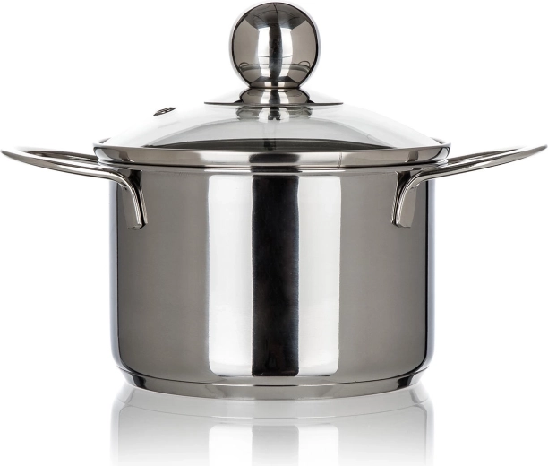 Oțelul inoxidabil robust (tip 201), cu grosimea peretelui de 0,5 mm, asigură o durată lungă de viață și întreținere facilă, în timp ce mânerele late oferă o priză sigură. Oala este compatibilă cu toate tipurile de plite — gaz, electric, vitroceramic și inducție. După gătit, o puteți introduce cu ușurință în mașina de spălat vase; este potrivită și pentru utilizare în cuptor.