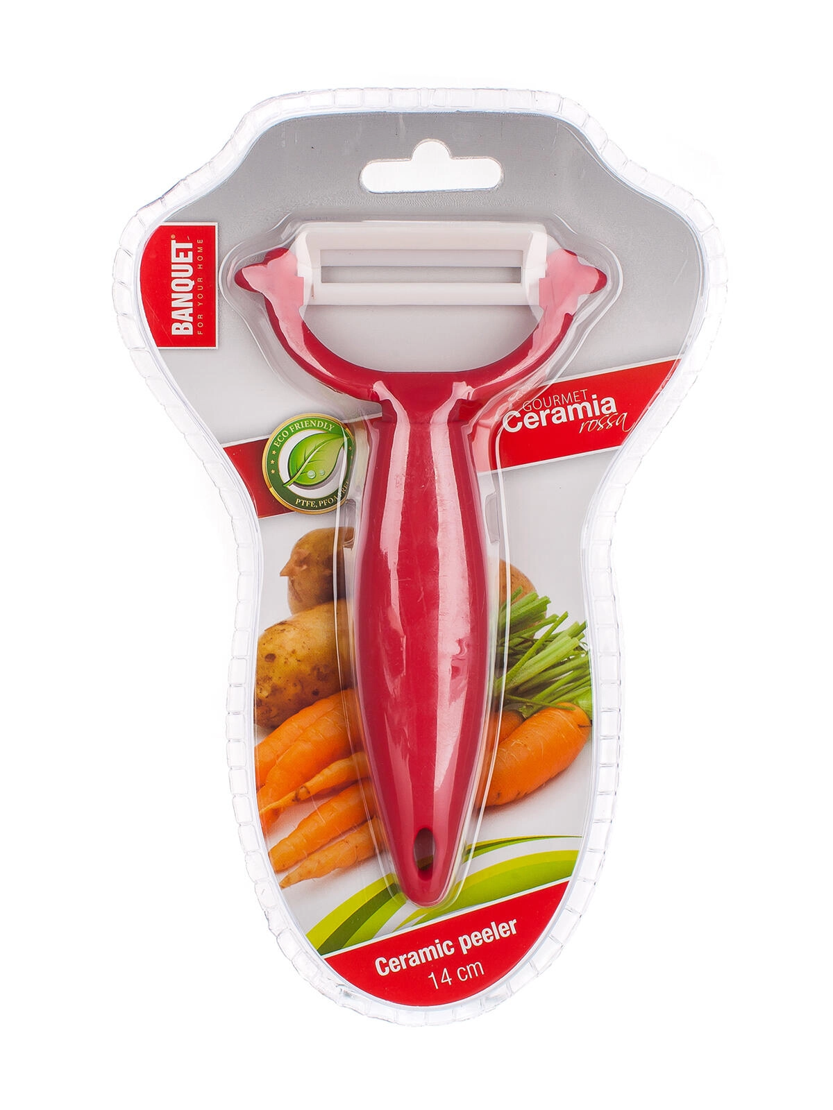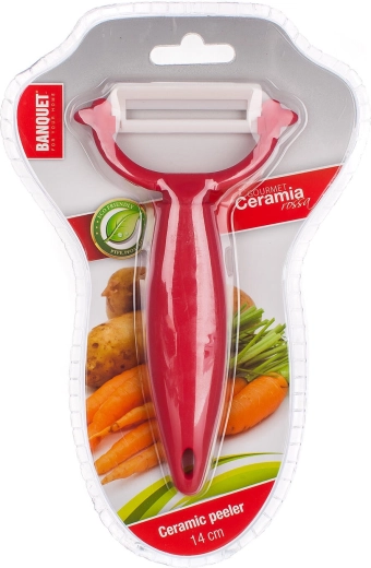 Curățătorul ceramic tip Y este un ajutor excelent în orice bucătărie. Lama ceramică albă din oxid de zirconiu (lățime 4 cm, grosime 0,8 mm) își păstrează ascuțimea excepțională și, la decojire, este delicată cu ingredientele, astfel păstrează vitaminele și enzimele. Datorită construcției ușoare și mânerului confortabil din plastic, se folosește ușor și precis.