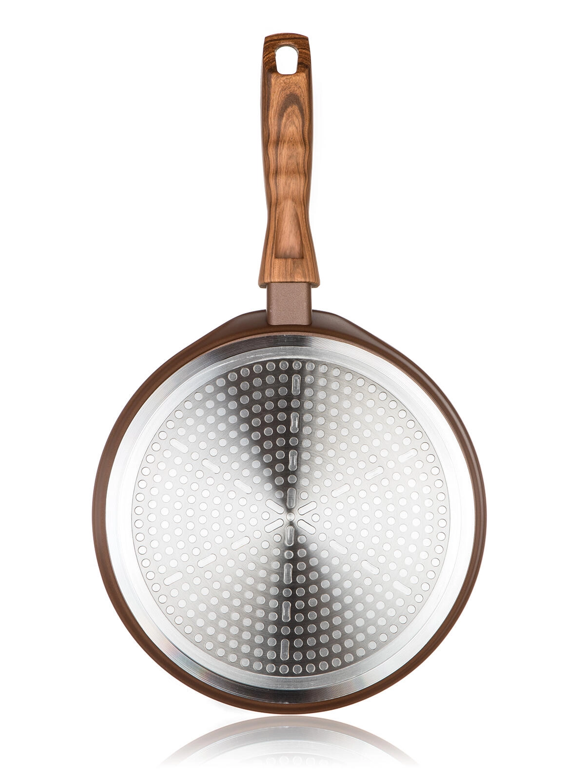 Fundul pentru inducție cu bază metalică distribuie căldura uniform și economisește timp la prepararea clătitelor, pancakes și tortilla.
