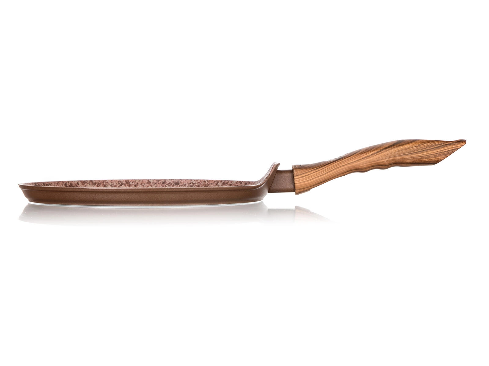 Tigaie ușoară și rezistentă pentru clătite, cu diametrul de 24 cm, având suprafață Smart Stone Brick ce asigură coacere uniformă, răsturnare ușoară și aderare minimă. Datorită stratului antiaderent dublu, fundului pentru inducție și mânerului ergonomic cu soft touch, este ideală pentru prepararea zilnică a clătitelor, pancakes și tortilla.